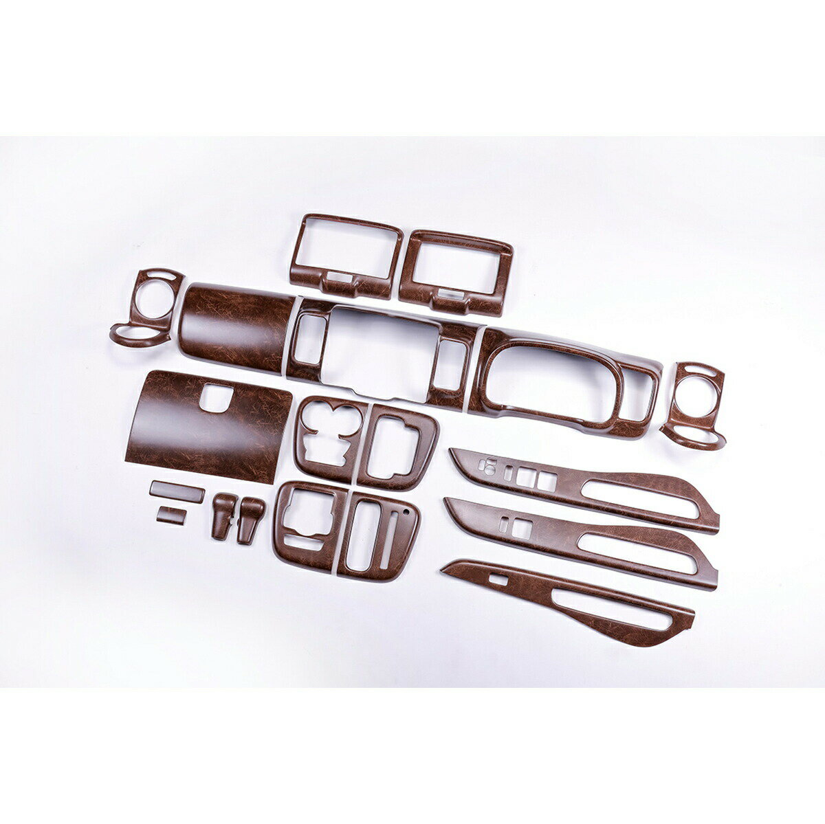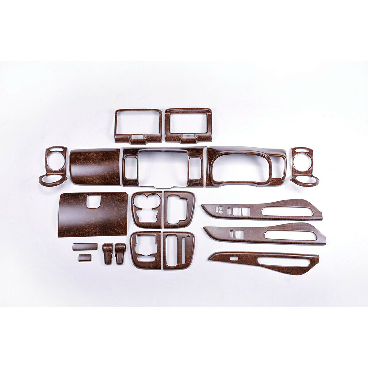 商品詳細管理番号357b118-1メーカーWANGAN357商品名マット木目ウッド室内パネル※インテリアパネルのみの販売です※ステアリングも取り扱いしておりますので合わせてご検討よろしくお願いします車名エブリイワゴン車両型式DA17W特記事項純正パネルに貼り付けタイプ※両面テープが付いています他車流用流用に関してはそのまま取り付けできるとは限りません。加工や部品交換が必要になる場合がございます。商品説明マット木目ウッド室内パネルエブリイ DA17 (純正パネルに貼り付けタイプ)※インテリアパネルのみの販売です(7インチナビパネル付)車種専用設計で、愛車をスタイリッシュに演出!ノーマルでは物足りない方にお勧めです。●シフトノブ周りパネルに貼り付けタイプ!車種専用に立体形成された木目調インテリアパネルです。●ドリンクホルダー周り両面テープ付で純正パネルに貼り付けるだけの簡単装着。ワンランク上の車内空間を演出します。●助手席ドア周りぬくもりのあるインテリアはドライバーの心を落ち着かせ、冷静な運転が行えるようになります。●グローブボックス汚れてしまった場合や、イメージチェンジにも最適です。●パネルを変えるだけで印象がガラッと変わります●両面テープ付で純正パネルに貼り付けるだけの簡単装着●インテリアパネル19パーツ入り7インチナビパネル※ワイド用も付属しています注意事項1・装着前に必ず仮合わせ及び脱脂作業を行ってください。不十分な場合剥がれの原因となる場合が御座います。・製品に個体差があります。継ぎ目の部分などピッタリ嵌まらない場合はヤスリなどで削って調整してください。注意事項2※バン車両のPA、PCのMT車、に関しましては、シフトノブとシフトノブ周りの形状が違いますので装着が出来ません。メーカーオプションのディスプレイオーディオと8インチナビには装着出来ませんので、メーカーオプション用のディスプレイオーディオは専用のナビ枠だけを別途でご購入ください。