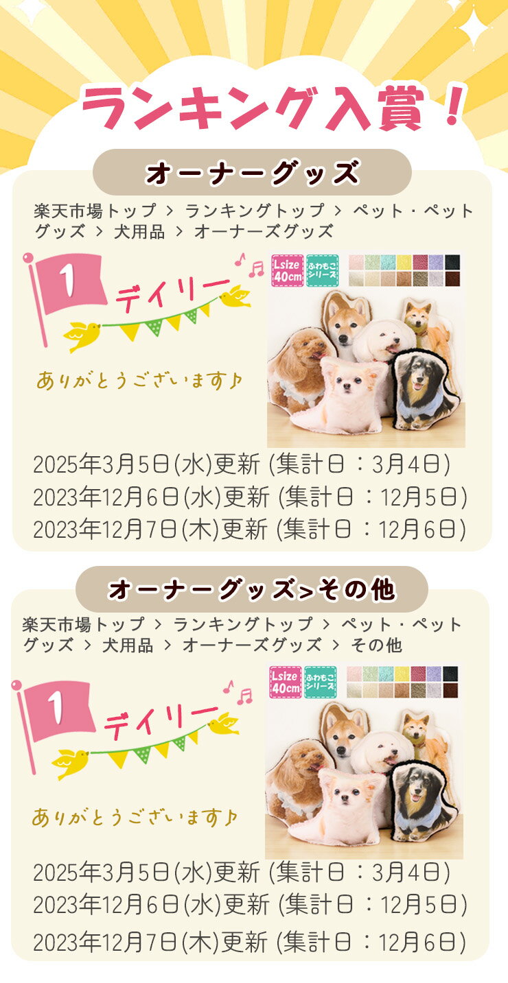 【オーダーメイドクッション】 【サイズ】Lサイズ(A3相当) ペットちゃんのお写真をお預かり後、 A3サイズ(42×29.7cm)におさまるようにレイアウトを行い、 生地へ特殊プリントしクッションをお作りいたします。 【素材】 表:良品質コットンオックス綿100% 裏:ポリエルテル100% 中綿:粒綿ポリエステル100% 【裏地色は下記よりお選びいただけます】 ホワイト ベージュ ピンクベージュ グレージュ キャメル ブラウン ブラック ピンク グリーン ブルー イエロー ローズピンク ブルーグレー パープルグレー グレー ※ご注文方法は商品ページにてご確認ください。 ※お使いのデバイスによってモニターと実際の色が異なる場合がございます。うちのコの写真からお作りする オーダーメイドクッションです。 お誕生日の記念や、 ご友人のペットちゃんのクッションを贈り物として、 離れて暮らす家族へ、 うちのコの成長記録としても クッションを作るのもおススメです。 お写真をお預かりして A3サイズ(42×29.7cm)相当でお作りいたします。 原稿のご確認後の製作となるので 仕上がりイメージを事前に確認でき、 オーダーメイドが不安な方も 安心してご依頼いただけます。 お届け内容 【クッションLサイズ(A3相当)】 ペットちゃんのお写真をお預かり後、 A3サイズ(42×29.7cm)におさまるようにレイアウトを行い、生地へ特殊プリントしクッションをお作りいたします。 仕上がりサイズはお写真のポーズによって異なります。 【素材】 表:良品質コットンオックス綿100% 裏:ポリエルテル100% 【中綿】粒綿ポリエステル100% 制作の流れ 【クッション制作に事前ご準備いただくもの】 ・お写真1枚 ・ペットちゃんのお名前 ・お写真を切り抜く際のご要望 例:全身にしたい、出来る限り明るく調整して欲しい・・など 複数ご注文の場合は写真ごとに色やサイズの指示も明記ください。 1.ご購入後、1週間以内に楽天市場TOPの【購入履歴】のお問合せからお写真&詳細をお送りください。 ■楽天アプリからの手順 【購入履歴】→【詳細】→【ショップへの問い合わせ】→【その他】→ 【注文情報の追加連絡をしたい】→お写真&必要事項を送る ■アプリをお持ちでない方 購入履歴は画面の上の方にあります。 【購入履歴】→【その他】→【ショップへの問い合わせ】→【その他】→ 【注文情報の追加連絡をしたい】→お写真&必要事項を送る 2.当店にて写真と必要事項を確認後、【写真・詳細の受付完了】の返信をさせていただきます。 その後ご要望内容にそってイメージ原稿を作製いたします。 3.イメージのご確認 受付完了から7日以内にイメージ原稿をお送りいたします。 変更修正やご希望はこの時点でお受付いたします。 ※お写真自体の変更は別途加工賃がかかる場合がございます。 ※確認いただく原稿はデータ上の原稿となりますので、実際の仕上がりとは色味が多少異なる場合がございます。 お送りのイメージ原稿のご承諾も必ずお返事ください。 お返事がない場合は制作に取り掛かることができません。 4.ご承認の連絡後、製作開始 イメージ原稿のご承認のお返事をいただきましたら製作へと取り掛かってまいります。 5.発送・お届け イメージ原稿のご承認後、10日以内 に発送となります。 長期休暇は除きます。 原稿作製、クッション作製日数につきましては、ページ内の納期情報をご確認ください。 ご不明点はご依頼前にお問合せください。 にゃんばーわん工房 nyan-wan-kobo@shop.rakuten.co.jp ↓クッション一覧はこちら↓