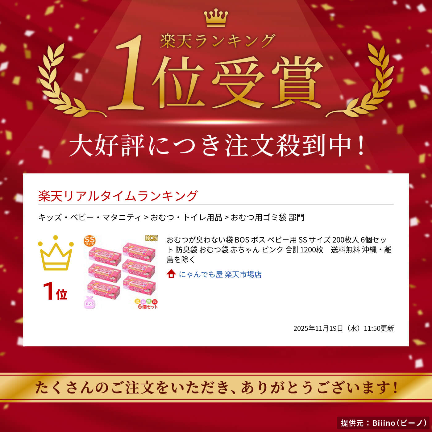 おむつが臭わない袋 BOS ボス ベビー用 SS サイズ 200枚入 6個セット 防臭袋 おむつ袋 赤ちゃん ピンク 合計1200枚 送料無料 沖縄・離島を除く うんち以外の臭いにも効果あり。菌も漏らさず安心。もちろん、日本製。 驚くほど臭いません!(゜ロ゜ノ)ノ 菌も通さず、衛生的!∩(≧∇≦)∩ 使いやすさにもこだわりました!v(°∇^*)♪ 使用済みオムツの臭いで困っている人へ!(o>艸 生ゴミの臭いで困っている人へ!(*゜0゜) ペットのうんちの臭いで困っている人へ!(=゜ω゜=;) 1 関連商品はこちらおむつが臭わない袋 BOS ボス ベビー用 ...8,870円おむつが臭わない袋 BOS ボス ベビー用 ...6,499円うんちが臭わない袋 BOS ボス ペット用 ...7,880円うんちが臭わない袋 BOS ボス ペット用 ...8,970円うんちが臭わない袋 BOS ボス ペット用 ...7,880円うんちが臭わない袋 BOS ボス ペット用 ...8,970円生ゴミが臭わない袋 BOS ボス 生ゴミ 処...6,860円生ゴミが臭わない袋 BOS ボス 生ゴミ 処...6,499円生ゴミが臭わない袋 BOS ボス 生ゴミ 処...7,880円