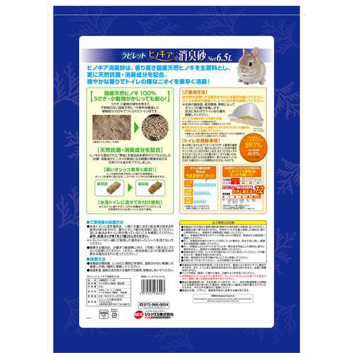 お店TOP>小動物・鳥・は虫類・昆虫>小動物トイレ用品>ラビレット ヒノキア 消臭砂 (6.5L)【ラビレット ヒノキア 消臭砂の商品詳細】●ヒノキア消臭砂は、香り高き国産天然ヒノキを主原料とし、更に天然抗菌・消臭成分を配合。さわやかな香りでトイレのイヤなニオイをすばやく消臭!●国産天然ヒノキ100%。うさぎ・小動物がかじっても安心!うさぎ・小動物の習性を考えて、不純物のない国産天然ヒノキ原料を厳選した植物成分100%で作られたトイレ砂です。●天然抗菌・消臭成分を配合。ヒノキから抽出された「精油」を食品由来原料でカプセル化した抗菌・消臭成分にニオイの原因になる雑菌の繁殖を抑える天然バイオ成分をプラスしました。●臭いオシッコ素早く吸収!ヒノキ原料の粒子を均一に揃えた特殊製法。オシッコを素早く取り込み、ニオイやトイレ汚れの付着を防ぎます。●水洗トイレに流せて片付け便利!水にもさっと崩れやすく、100%有機成分でつくられている天然原料だから水洗トイレに流せて便利。●保管に便利なチャック付き!!【ラビレット ヒノキア 消臭砂の原材料】天然ヒノキ、ヒノキ精油、バイオ活性水(酵素)、消臭剤【注意事項】・本製品はうさぎ等の小動物(哺乳類)専用です。他の目的には使用しないでください。・本製品は食べ物ではありません。子供やペットが大量に誤食した場合は、直ちに使用を中止し、医師または獣医師に相談してください。・万一、本製品の粉末を人やペットが吸い込んだ場合は、医師または獣医師に相談してください。・万一、本製品の中身が人やペットの目に入った場合は、流水で洗い流し、医師または獣医師に相談してください。・万一、本製品により人やペットがアレルギー等の症状を起こした場合は、直ちに使用を中止し、医師または獣医師に相談してください。・空袋は直ちに子供、ペットの手の届かないところに処分してください。口や鼻をふさぎ、窒息する恐れがあります。・子供、認知症の方の手の触れない所に保管してください。・火気に近づけないでください。火災の原因になります。・本製品は天然の木粉を使用しております。製品により色がばらつく場合があります。また、トイレ砂に原料由来の色がつく場合がありますが、品質に問題はありません。・ペットや用品(器具)に触れた後は、石鹸でよく手を洗ってください。・天然原料だけでつくられていますので、万一ペットが口にしたり食べても安全ですが、頻繁に食べる場合は使用をやめてください。・水洗トイレに流す場合は、一度に大量に流すと配水管が詰まる可能性がありますので、握りこぶし1個分を目安に流してください。流した後は必ずトイレ砂が残っていないことを確認してください。必ず、水流コックを「大」「強」にしてください。・トイレシーツと一緒にご使用した場合はトイレシーツを流さないでください。・廃棄する場合は、少量ずつ紙袋等に分け、「可燃」・「燃える」ゴミとして処理してください。(ただし、各自治体によって処理方法が異なる場合はそれに従ってください。)・本製品は開封後、しっかりと開封口(チャック)を閉め、湿気の少ない乾燥した風通しの良い場所に保管してください。・高温多湿、直射日光のあたる場所での使用、保管はしないでください。【ブランド】ヒノキア【発売元、製造元、輸入元又は販売元】GEX(ジェックス)リニューアルに伴い、パッケージ・内容等予告なく変更する場合がございます。予めご了承ください。GEX(ジェックス)大阪府東大阪市今米1-14-5072-966-0054広告文責:楽天グループ株式会社電話:050-5306-1825[小動物・鳥・は虫類・昆虫/ブランド:ヒノキア/]