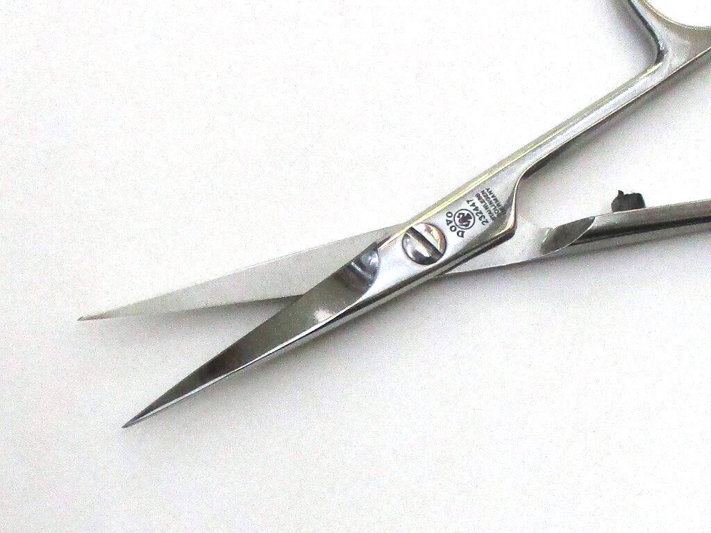 ドイツ製(ゾーリンゲン市)。 刺繍のような細密な手芸に向いた形状のハサミです。全長:10.5cm 材質:ステンレス鋼 20世紀初頭の1906年に創業し、ゾーリンゲン市内でも有数の技術を誇るDOVO(ドヴォ)社の製品です。【お手入れの注意】鋼(ハガネ)よりも水気に強いステンレス鋼を用いていますが、濡れた状態が長時間続くとサビを生じますのでご注意ください。(ステンレス鋼はハガネに比べて錆びにくい代わりに、刃物としての切れ味が劣ります)