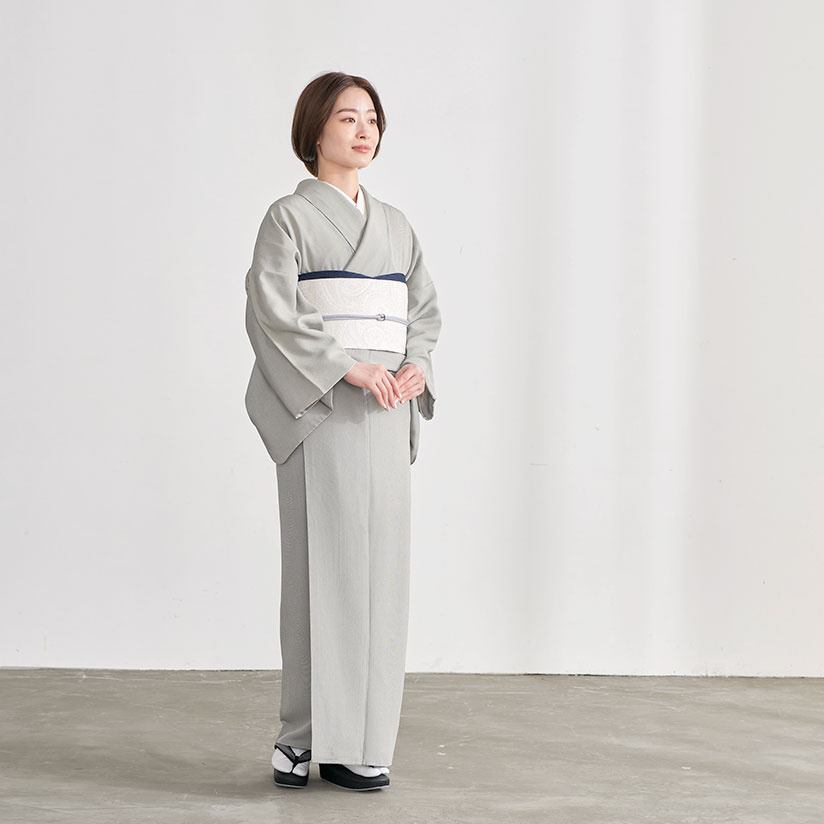 装いを1ランクUP♪隙なく高級感ある帯揚げ、できました! 生地は創業大正7年 京都丹後の与謝郡の“織元 ワタマサさん” 目の届く小ロットの生産で質の高さを追求し 決して大量生産しないというワタマサさんの個性が しっかりと帯揚げの中に詰まった逸品! 柄は、古典柄でもある「正倉院文様」。 柔らかな色合いのお着物&帯をさらに上品に、 そして上質にみせてくれる格のある文様です。 さらに染めは、京の手の良い引き染め屋さんに、 手作業にて一枚一枚丁寧に染め上げて頂いたことで、 "落ち着いた紺色"と"華やかな孔雀色" を表現することが出来ました。 どちらも高級感をもたせながら、 ピリッと帯周りを締めてくれるアクセントとなる色合いです♪ 三重織で生まれる、他を圧倒する上質さと存在感! 染め柄の帯揚げは一般的によく目にしますが、 織柄の帯揚げはほとんどなく! 織柄の帯揚げが出来るのが 唯一!京丹後の名門“ワタマサ”さん! さらに経糸に通常の帯揚げの3倍の数を使用した “三重織” にすることでドッシリとした風合いの生地に! ただドッシリしているだけではなく、上質の絹の風合いで しっとりとなめらか、帯揚げを締めた際には 形がふっくらと崩れにくく、 キレイな形をキープできる帯揚げなのです。 また“三重織”であることで “通常の3倍柄が浮き上がる!” その為柄にハッキリとした凹凸が生まれ 絹の光沢も際立ち、 存在感と高級感ある帯揚げとなるのです! ヘビロテ確実!カジュアルにもフォーマルにも 織の帯揚げは、金銀の豪華な装飾がなくとも 格が高い帯揚げとなりますので、訪問着・付下げ・無地といった フォーマル/セミフォーマルといったかしこまったお席から、 小紋・御召・紬などのカジュアルな装いにもOK! 1度この帯揚げを味わってしまうと、ずっとこの帯揚げで 済ませてしまう程、スタッフ一同ヘビロテ♪ なんといっても、ちょっと格あるコーデでも安心して締められますし、 この絶妙な、美しい!色合いが、 どんなお着物や帯の色合いにも馴染んでしまう優れものなのです。 ぜひみなさんにもお試しいただきたい逸品です! 【サイズ】 幅:約30cm 長さ:170cm 【品質】絹 【合わせるお着物】 訪問着・付け下げ・無地・小紋・御召・紬 【合わせる帯】 ・西陣織・塩瀬帯・縮緬帯・博多帯・紬帯 【季節】 春・秋・冬