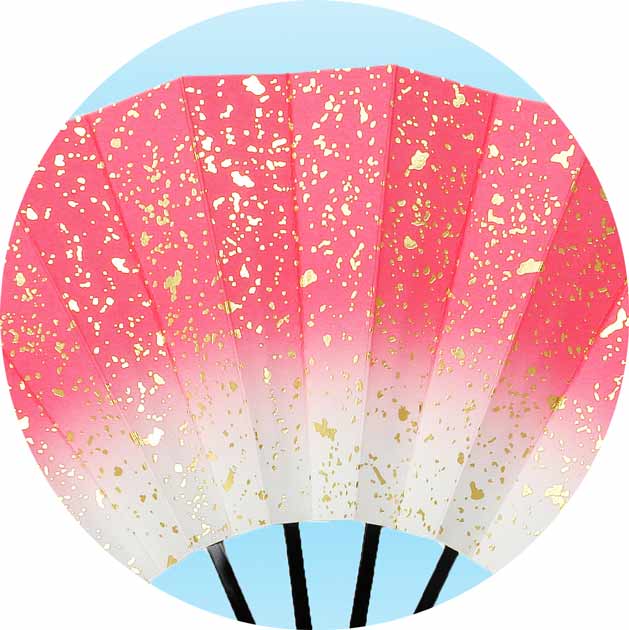 可愛い舞扇や格好良い舞踊扇、SNS(Twitter、Instagram(インスタ,インスタグラム))映えするキラキラ光る扇子やシンプルで王道な舞扇子など多数取り揃えております。 ※在庫管理には細心の注意を払っておりますが、複数のショッピングサイト・店舗販売を運営いたしております都合上、同時注文があった場合、在庫切れとなる場合がございます。メールにて入荷日等をご連絡させていただきますので、予め了承頂きますよう宜しくお願いいたします。 商品説明柄・骨柄・深ボカシ(緑/ピンク/紫/ブルー/藤/赤/黄)金砂子入骨・黒塗り/9寸5分 用途稽古用など代表曲目代表曲目・・・特になし注意点 商品の特性上、扇子を広げてからの返品はできかねますので、ご了承ください。 ※クリックポストもしくは宅配便になります。 【ご購入時のご注意】 ※ 画面上と実物では多少色具合が異なって見える場合もございます。ご了承ください。 商品の特性上、扇子を広げてからの返品はできかねますので、ご了承ください。 ※扇子を留めている銀色の紙の帯(責め紙)は扇が広がらないように留めているもので、新品状態を示すものではございません。 ※扇子箱は付属しておりません。ご希望の方はこちらからご購入下さい。扇子箱 【舞扇子】 この商標は、京都扇子団扇商工協同組合が有する地域団体商標「京扇子」を表し、扇面・扇骨・仕上加工ともに国内生産したものです。 またこの商標と【京扇子・京うちわ】の名称表示が出来るのは、京都を中心として国内で生産された商品のみに限られ、組合員だけが使用できるものです。 ※京都扇子団扇商工協同組合様ホームページより抜粋 ※付属品はございません。安い おすすめ 扇子は日本舞踊(にほんぶよう)・新舞踊(しんぶよう)・民謡(みんよう)・大衆演劇(たいしゅうえんげき)・よさこい・祭(まつり)・踊り(おどり)用品の 株式会社ODORI Company(オドリカンパニー)ボカシ扇子に金を散らし高級感を出しました。光沢のある金ですので光に反射してきらきら輝き楽しくお稽古できます。もちろん本番でも使用できます。