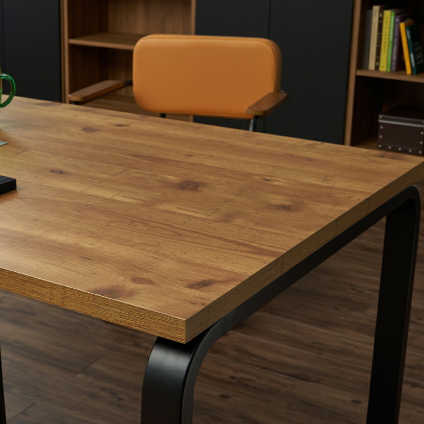 古木のような深い味わい、本格的な木目調のミーティングテーブル 温かみと頑丈さを兼ね備えた木金ハイブリッドシリーズ「METIO」に、古木調の「2.0」ラインが登場!ヴィンテージ感が溢れる本格的な古木調ミーティングテーブルです。天板角の脚部は丸みをもたせて柔らかな印象に。中央には配線ボックスを搭載し、スッキリとした机上で会議を行えます。落ち着きのある色合いは、応接シーンにもおすすめ。適度な重厚感が漂い、インダストリアル、ブルックリンテイストをまとった、オフィス空間をデザインする1台です。 ポイント 曲線が美しいスチール脚 天板角の脚部がアール状になっており、金属や角の硬いイメージを柔らかく優しい印象に。シンプルなデザインにアクセントを加えています。 電源タップを収納できる配線ボックス 天板にはケーブルタップを収納できる、スッキリとしたデザインのアルミニウム製配線ボックスが付いています。 がたつきを抑えるアジャスター付き 床の微妙な高低差で起きるがたつきも、アジャスターで調整できます。 味がある古木調で傷つきにくい天板 味わい深い色の天板表面は、古木のような木目調のシボ加工を施しています。さらに傷・汚れに強いメラミン樹脂化粧板を使用。 椅子2脚がぴったり入る幅1500mmとゆったり入る幅1800mm 幅1500mm×奥行750mmはチェア2脚がぴったりと収まり、幅1800mm×奥行900mmはゆったりと収まります。省スペースに設置したい場合、机上スペースを広く確保したい場合など、場所や用途によって選べる2サイズ展開です。 使用イメージ 商品サイズ 商品について サイズ幅1800×奥行900×高さ720mm 材質天板:メラミン樹脂化粧板・パーティクルボード、脚:スチール(粉体塗装)、配線ボックス:アルミニウム、アジャスター:PP 重量36.9kg 構造天板:フラッシュハニカム構造 耐荷重(等分布)天板:50kg 梱包数2 梱包サイズ梱包1:幅1025×奥行780×高さ125mm梱包2:幅1945×奥行965×高さ85mm 梱包重量梱包1:10.9kg、梱包2:31.9kg 必要工具六角レンチ(付属) 組み立てお客様組立の商品です。 備考※2025年10月中旬頃の出荷分より、従来同梱しておりましたホルムアルデヒド吸着シートの同梱が随時無くなります(供給メーカーの廃番のため)。予めご了承ください。 配送について 配送費用について法人様配送費無料個人様・沖縄・離島は別途送料。個人宅(法人名または屋号の記載がされていない)へのお届けには別途配送料が発生いたしますので、予めご了承ください。