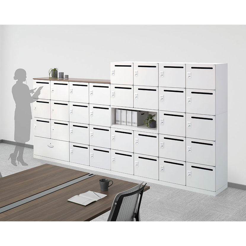 変化するワークシーンに寄り添うシステム収納庫/パーソナルボックス 収納物に合わせて3つの奥行が選べる、バリエーション豊かなシステム収納庫「クウォール」。個人の収納がないフリーアドレスデスクや私物を入れる更衣ロッカーをもたないオフィスで便利なパーソナルボックスです。ワーカーの使い勝手を考慮し、現在のオフィスに求められるユニバーサルデザイン・セキュリティ・セーフティ・ユーザビリティを実現。ボディには、オフィスに清潔感と明るさをもたらす次世代のスタンダードカラー《ホワイト》を採用。バリエーションが豊富なため、シリーズを組み合わせることで、オフィスシーンやイメージに合わせたトータルコーディネートが可能です。 ポイント 個人収納に適した収納庫 各扉に鍵が付いており、オフィス内での個人収納として、ファイルや書類、鞄やノートPCなどの一時収納に適した収納庫です。 配線ダクト付き 配線容量の増大に備え、前後に2カ所、上下・庫内配線ダクトがついています。 CP充電保管機能 別売りの配線ベースとOAタップを使用することで、ノートPCやタブレットを充電しながら保管することができます。 ラッチ機構 開き扉にラッチ機構を採用しました。扉が自然に開いたり、収納物が飛び出すのを防ぎます。また扉には全て戸当りクッションがついています。 扉の開きは180° 180°開きタイプの丁番を採用。狭い通路でも扉がジャマになりません。また樹脂パーツを採用することにより滑らかな開閉が行なえます。 施錠して管理できるカギ付き 暗証番号で施錠・解錠するキーレスタイプのダイヤル錠です。好みの数字を暗証番号に設定して使用します。カギの管理が不要で個人から多人数での利用が可能です。 開き扉にキーフックを採用 開き扉の内側にキーフックを装備しています。鍵の紛失が少なくなり、頻繁に施錠しやすくなります。 メールポケット取り付け可能 扉裏にはオプションでメールポケットを取り付けることが可能です。使用することで書類をスマートに保管できます。 スタンダードなホワイトカラー 色は空間が広く感じられるホワイトカラーを採用。開放的で明るく清潔感があるオフィス空間を演出します。 ベースが必要な商品です 設置する際には、単体でも必ず床にオプションのベースをご使用のうえ、アジャストしてください。メールボックス・パーソナルボックス型収納の内部に電源などの配線をする場合は必ず配線ベースRW45-NPB・RW4-NPBをご使用ください。壁コンセントなどから収納庫内部に電源供給できます。 使用イメージ 商品サイズ 商品について サイズ(本体)外寸 / 幅900×奥行450×高さ700mm有効内寸(1つあたり) / 幅410×奥行412×高さ290mm 重量27kg 材質本体 / スチール、粉体塗装 (一部メラミン焼付塗装)扉 / ABS樹脂 錠タイプダイヤル錠(抗菌加工) 生産国日本 対応商品【対応ベース】SE-RW45-NB(72126 / RW45-NB)SE-RW45-NPB(72131 / RW45-NPB)SE-RW45-NCB(72130 / RW45-NCB)SE-RW45-NDB(72129 / RW45-NDB)SE-RW45-13SB(78262 / RW45-13SB) 梱包数1 組み立て完成品 備考上下連結金具付きグリーン購入法適合商品配線ダクト各2ヵ所付き開き扉 / ラッチ付き ご注意こちらの商品を設置する場合には単体の場合でも必ずベースをご使用のうえ、水平にアジャストしてください。 配送について お届けについて・メーカー直送エリア(設置便)平日のみのお届けとなります。・上記以外のエリアは月〜土(日祝を除く)のお届けとなります。・法人名・屋号の記載がない場合、または個人のお客様は、地域によってはお届け出来ない場合がございます。※重要なお知らせ※●現在、静岡県内の、下記エリアへの配送ができない状況となっております。【沼津市(戸田・井田)、函南町、伊豆の国市、伊豆市、熱海市、伊東市、下田市、賀茂郡全域】●また、一時的に下記地域では追加納期を頂戴しております。・追加納期:プラス2日【福岡市・糸島市・大野城市・太宰府市・筑紫野市・春日市・筑紫郡・古河市・糟屋郡】・追加納期:プラス3日【佐賀・長崎・熊本・宮崎・鹿児島・山口県】お客様には大変ご迷惑をおかけいたしますが、ご理解ご了承のほどよろしくお願いいたします。 配送費用について法人様配送費無料※北海道は1個あたり別途送料2200円(税込)※沖縄・離島は別途送料お見積り個人宅(法人名または屋号の記載がされていない)へのお届けには別途配送料が発生いたしますので、予めご了承ください。 階上げについて階段での荷上げが必要な場合は別途費用が発生いたしますのでご相談下さい。(1階での軒先渡しの場合は送料無料) 納期変更・再配送についてメールでの納期確定後はキャンセル不可となります。納期確定後の納期変更には別途費用が発生いたします。また、メーカー直送便でのお届けの場合、ご不在の場合は再配達料が発生いたします。 ご注意※ご注文前に搬入経路・間口の確認をお願い致します。※メーカー直送便対応地域以外の場合、軒先でのお渡しとなります。 ※対応地域外は宅配便で