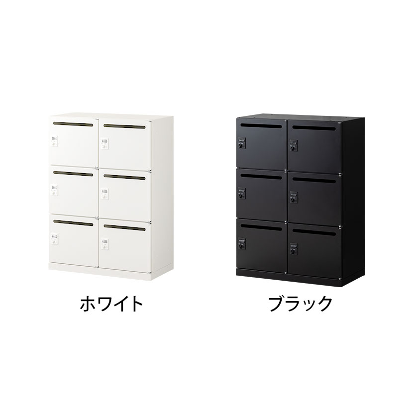 シリーズで自由な組み合わせが可能。空間を無駄なく使えるスチールロッカー 収納効率と使いやすさを重視した「アーチー」シリーズのパーソナルロッカー。頑丈なスチール製で、2列3段6人用の下置きタイプです。オフィス収納に必要な容量をしっかりと備えながら省スペースを実現。幅や奥行がコンパクトなので、フロアや通路の限られた空間を活かして設置できます。A4対応の投函口やダイヤル錠を備えるなど実用性も高く、フリーアドレス環境にもおすすめ。同シリーズの書庫と組み合わせて、収納力をアップできるのもポイントです。 ポイント A4サイズ対応で、1段あたりの高さは選べる2タイプ。お求めやすいプライスも魅力 1人あたりのサイズは幅800mm×奥行400mm。高さは収納量に応じて350mmと525mmの2タイプから選択可能です。十分な容量と省スペース性を両立したバランスのよい設計で、A4サイズのファイルボックスにも対応。書類やペンケース、カバン類やノートパソコン(15インチまで)など、私物や仕事道具がすっきりと収まります。個人ロッカーとして過不足のない性能を備えながら、従来品に比べてお求めやすい価格も魅力です。 暗証番号で開閉するダイヤル錠 防犯性を高めるダイヤル錠を装備。ユーザーごとに暗証番号を設定できます。カギを紛失する心配がないのもポイント。 大きく開き、取り出しやすい扉 扉は150°程度※まで大きく開くヒンジ(蝶つがい)を採用。※隣のロッカーまで干渉せずに開く角度です。 メールボックスとしても活躍 扉上部には、A4サイズにも対応する投函口を配備。書類や封筒を折り曲げずに入れられます。本人不在時の郵便物の受け渡しにも便利。 衝撃を和らげる戸あたりクッション 扉の内側には、樹脂製の戸あたりクッション付き。扉を閉める際の衝撃音やバウンドを和らげ、扉の傷付きも防ぎます。 ホワイトとブラックの選べる2色 同シリーズのアーチー書庫と統一感のあるシンプルなデザイン。ツヤを抑えた質感で、ホワイトとブラックの2色から選択可能です。 別売りの天板・側板でおしゃれな印象に アーチーシリーズ専用の天板・側板(別売り)を取り付け可能です。インテリア性を高め、オフィスの印象も引き立てます。 アジャスター付き 下置きタイプはアジャスターが付いており、床に対してロッカーを水平にアジャストすることができます。 使用イメージ ホワイトのロッカーとナチュラルカラーの天板・側板(別売り)は相性良好。空間全体のインテリア性も高まります。 落ち着いた印象のブラック。空間を活かすコンパクトな設計で、フリーアドレスやコワーキングスペースの個人ロッカーにもおすすめです。 バリエーション 商品サイズ 商品について サイズ(本体)幅800×奥行400×高さ1100mm サイズ(その他)内寸(1人あたり) / 幅364×奥行365×高さ300mm投函部 / 幅320×高さ22mm 重量43.90kg 耐荷重1人あたり / 10kg(等分布) 材質本体・扉 / スチール(粉体塗装) 錠タイプダイヤル錠 列数・段数2列3段 機能・特徴・A4サイズ対応・開閉角度 約150度・書類投函口付き・戸当たり付き・アジャスター付き 梱包数4 梱包サイズ梱包1 / 幅870×奥行460×高さ175mm梱包2 / 幅1200×奥行470×高さ115mm梱包3 / 幅1150×奥行880×高さ135mm梱包4 / 幅900×奥行480×高さ70mm 梱包重量梱包1 / 13.10kg梱包2 / 11.90kg梱包3 / 22.50kg梱包4 / 3.5kg 必要工具六角レンチ(付属)、プラスドライバー 組み立てお客様組立品 配送について 配送費用について法人様配送費無料沖縄・離島は別途送料。個人宅(法人名または屋号の記載がされていない)へのお届けには別途配送料が発生いたしますので、予めご了承ください。