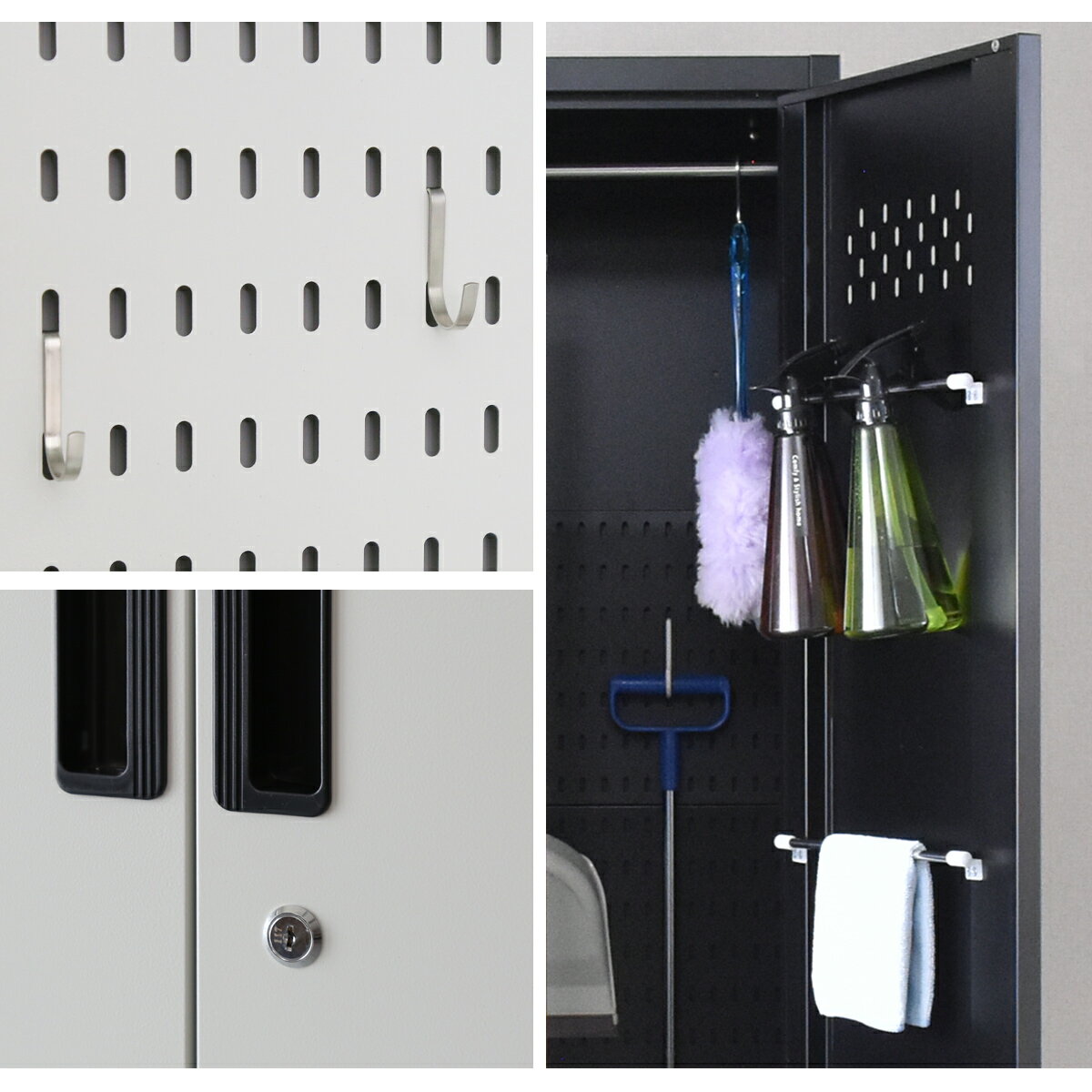 掃除用具入れ 掃除道具入れ 収納 ロッカー 清掃用具 幅45cm 幅30cm 収納 収納棚 収納ボックス フック付き 大容量 釣り 釣り用具入れ スリム オフィス 学校 部室 会社 趣味 用具入れ 鍵付き 通気穴 フック付き タオル掛け スチール ポールハンガー スペパ オービス 送料無料