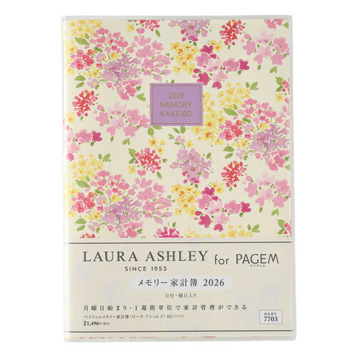26 ペイジェムメモリー家計簿B5 ローラアシュレイ/アメリ 【2026年1月始まり】