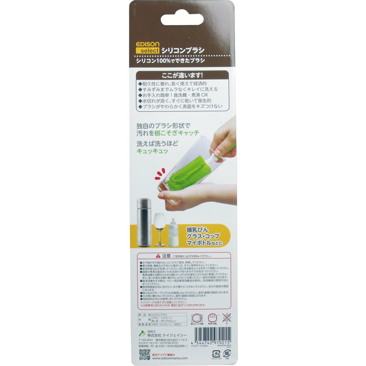 商品情報サイズ・容量個装サイズ:90X315X45mm個装重量:約90g内容量:1個入規格【材質】ブラシ・・・シリコーン取っ手・・・ポリプロピレン【耐熱温度】140度【消毒方法】電子レンジ:○煮沸:○【注意】・お子様の手の届かないところでご使用、保管してください。・傷や破損、亀裂などが生じた場合には、すぐに使用を中止してください。・使用前後は必ず洗浄してください。また洗浄後はよく水を切って保管してください。・過度の煮沸は製品をいためる恐れがありますのでお気をつけください。煮沸消毒する際は大きめの鍋にたっぷりのお湯を入れ3分ほど煮沸してください。また、取っ手部分が鍋に触れないようにご注意ください。変形の原因になります。・薬液消毒をする際は、ベビー用品専用消毒液を使用し、各消毒液の使用方法に従ってください。・長時間直射日光に当てたり、水や果汁につけないでください。劣化や変色の原因になります。・直火およびオーブングリルは使用しないでください。変形・破損の原因になります。・火の側に置かないでください。変形・破損の原因になります。・用途目的以外には使用しないでください。※パッケージは捨てずに保管してください。※注意事項に従わなければ、事故に結びつく恐れがあります。製造国:韓国発売元:ケイジェイシー広告文責:オフィスKanna TEL:070-8416-4134エジソンセレクト シリコンブラシ グリーン シリコン100%でできたブラシ!! シリコン100%でできたブラシ!! 独自のブラシ形状で汚れを根こそぎキャッチ!洗えば洗うほどキュッキュッ!●耐久性に優れ、長く使えて経済的。●すみずみまでムラなくキレイに洗えます。●お手入れ簡単、食洗機・煮沸OK。●水切れが良く、すぐに乾いて衛生的。●ブラシがやわらかく表面をキズつけません。●哺乳びん、グラス、コップ、マイボトルなどに。 1