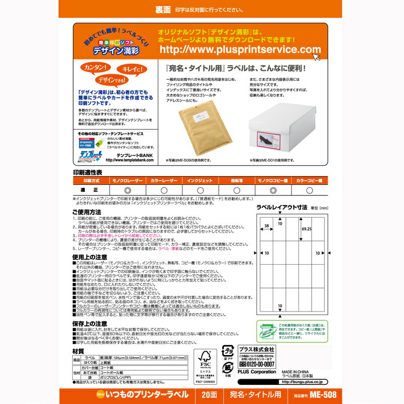 【最大2,000円オフCOUPON 12月1日-6日9時59分まで】【送料無料!】プラス(PLUS)ラベル いつものラベル 宛名・タイトル用ラベル A4 500枚入 20面 ME-508S 48-875