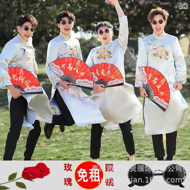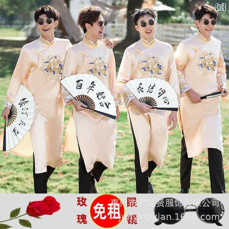 唐装 男性用 結婚式 礼服 中国風 唐装 相声 服 舞台 衣装 踊り 刺繡 ポリエステル 酒 красный シャンパン золотой グレー 青 черный S M L XL 2XL 3XL 4XL