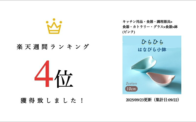 商品説明サイズ 径:約9.5×6.0cm 高さ:約3.0cm ※材質の特性上、寸法に若干の誤差が生じることがございます。材質 磁器日本製色・絵柄 おとめいろ うすあさぎ 商品説明 ひらひらと舞う花びらみたいなカタチ。 おうちで和カフェ気分を味わえるクラシカルな和食器。 カラーは美しくやわらかな、日本の伝統カラーが2種類。 お料理に、おやつにどうぞっ! ※モニターの発色具合によって実際のものと色が異なる場合がございます。取り扱いについてより長く安心してお使いいただくために。ーーーご使用上の注意ーーー ▼衝撃が加わると割れてケガをする恐れがあります。▼直火ではお使い頂けません。 ▼電子レンジ・オーブン・食器洗浄乾燥機は使用できます。各機器の注意表記を十分にお読みのうえ、正しい方法でお使いください。 ▼金彩や銀彩でデザインが施されている食器は、電子レンジを使用すると中で火花を散らしたり、デザインが黒ずんだりする場合があります。このような食器は電子レンジの使用は避けてください。 ▼長期間金属製のスプーンフォークなどで食器を強く擦ると、表面にキズがつきメタルマークが取れなくなることがあります。ーーーお手入れの方法ーーー ▼やわらかいスポンジをお使いください。金属たわしや研磨剤付きスポンジ、クレンザーなどは食器表面にキズをつける原因となります。 ▼少量の洗剤でキレイに洗浄できますが、目に見えない油分が残っている場合があるので、定期的に漂白剤のご使用をおすすめします。 関連商品【P10倍】小物入れ インテリア アクセサリー カフェ風食器 パステ...【P10倍】ハート マカロンカラー 豆皿 カフェ風食器 インテリア ...1,360円1,040円【P10倍】小物入れ インテリア アクセサリー 和カフェ パステルカラ...【P10倍】ヨーグルトボウル カフェ風食器 和カフェ かわいい オシ...1,680円1,020円【P10倍】豆皿 かわいい豆皿 おしゃれな豆皿 小皿 オーバル皿 ドッ...【P10倍】鉢 こばち スプーン レンゲ 小物 薬味入れ 使いやすい ...1,170円1,170円【P10倍】ハートのちいさなうつわ ピンク&ホワイトセット かわいい ...【P10倍】映える かわいい 小物入れ インテリア アクセサリー 和カ...1,470円1,680円【P10倍】八角形 豆皿 かわいい豆皿 おしゃれな豆皿 小皿 小さい皿...【P10倍】【180cc カップ】 おしゃれ 食器 おすすめ かわいい...1,490円990円