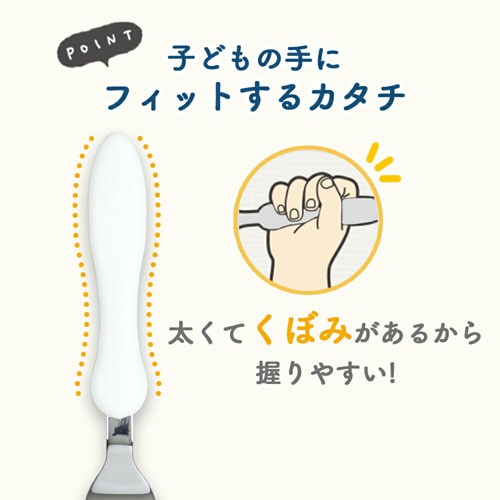 【P10倍】EDISON スプーン フォーク 握りやすい 食べやすい 軽い 持ちやすい ふっくら 三点持ち 使いやすい ステンレス 洗いやすい 三角持ち 三指持ち こどもスプーン 子供スプーン キッズスプーン 金属製 かわいい 高級感 エジソン 幼児 練習 ホワイト 日本製