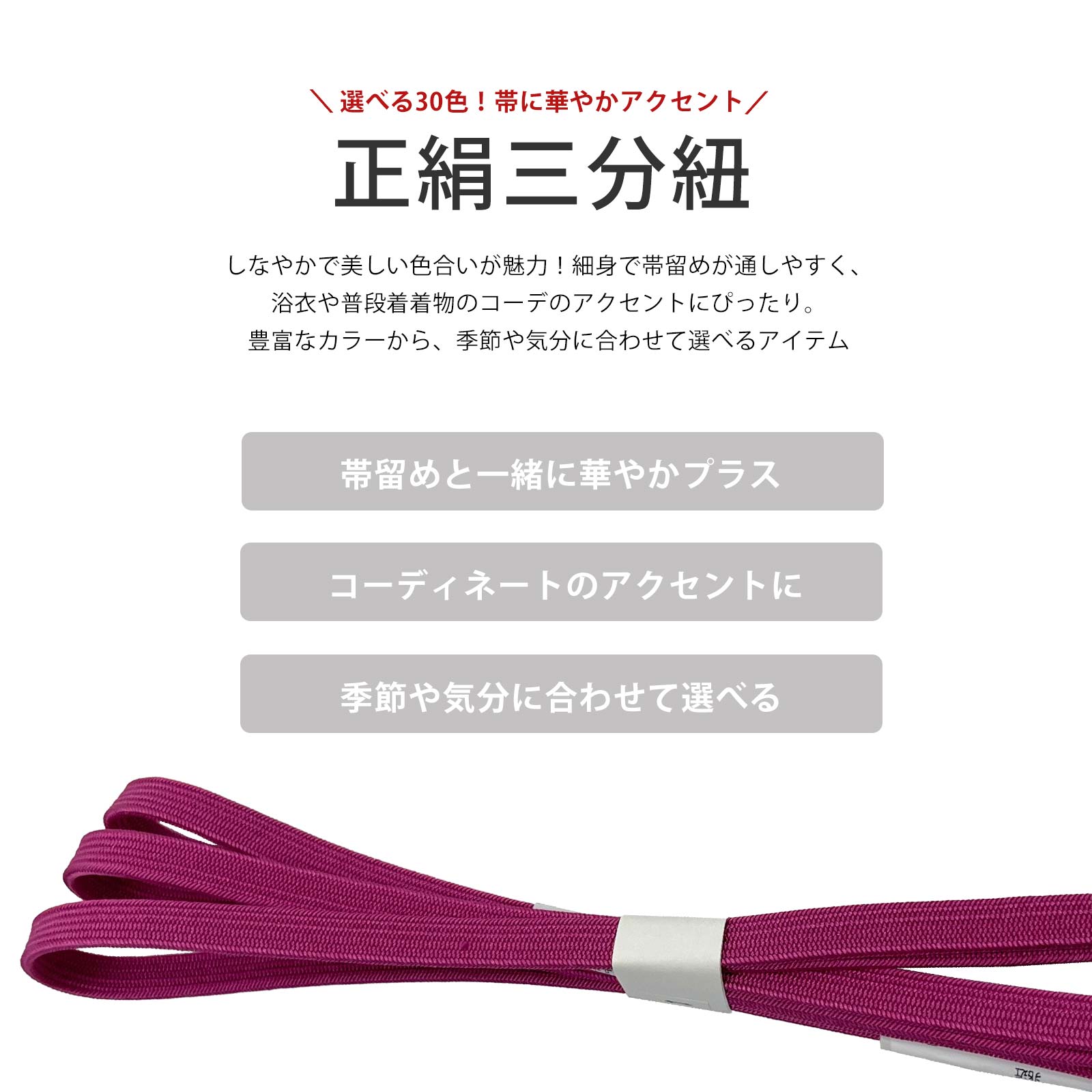 【ブラックフライデー!全品ポイント2倍】正絹 三分紐 帯締め 帯紐 帯留め 選べる30色 白 金 銀 黒【メール便可/D】
