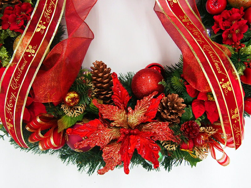 【スーパーSALE 最大2000円OFF】クリスマスリース 80cm レッド 玄関 北欧 大きい 大きめ 特大 施設 業務用 ナチュラル 手作り 赤 上品 高級 豪華 おしゃれ 飾り 装飾 かわいい ドア 壁掛け ディスプレイ 天然素材 花 造花 インテリア 国産