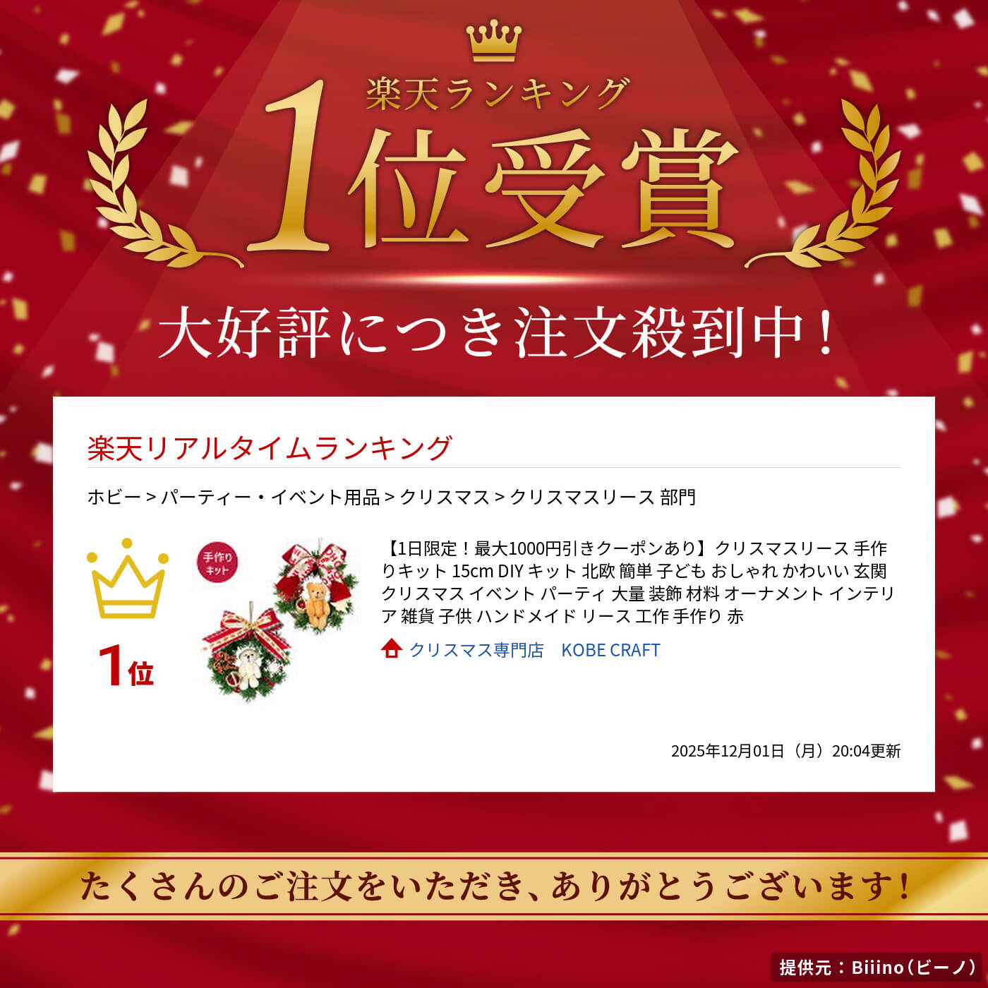 【スーパーSALE 最大2000円OFF】クリスマスリース 手作りキット 15cm DIY キット 北欧 簡単 子ども おしゃれ かわいい 玄関 クリスマス イベント パーティ 大量 装飾 材料 オーナメント インテリア 雑貨 子供 ハンドメイド リース 工作 手作り 赤