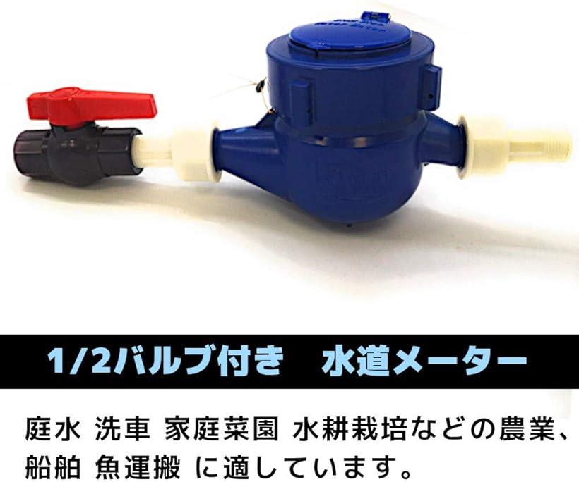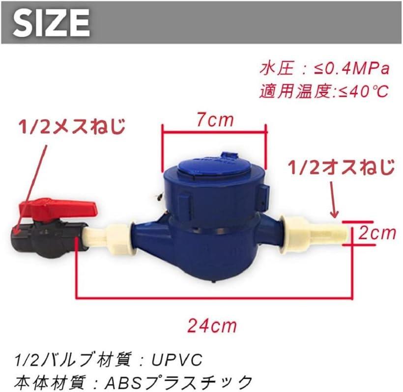 水道メーター プラスチック製 簡易 子メーター 水道量 水量計 庭水 洗車 家庭菜園 農業 船舶 魚運搬 用 1/2バルブ 付き
