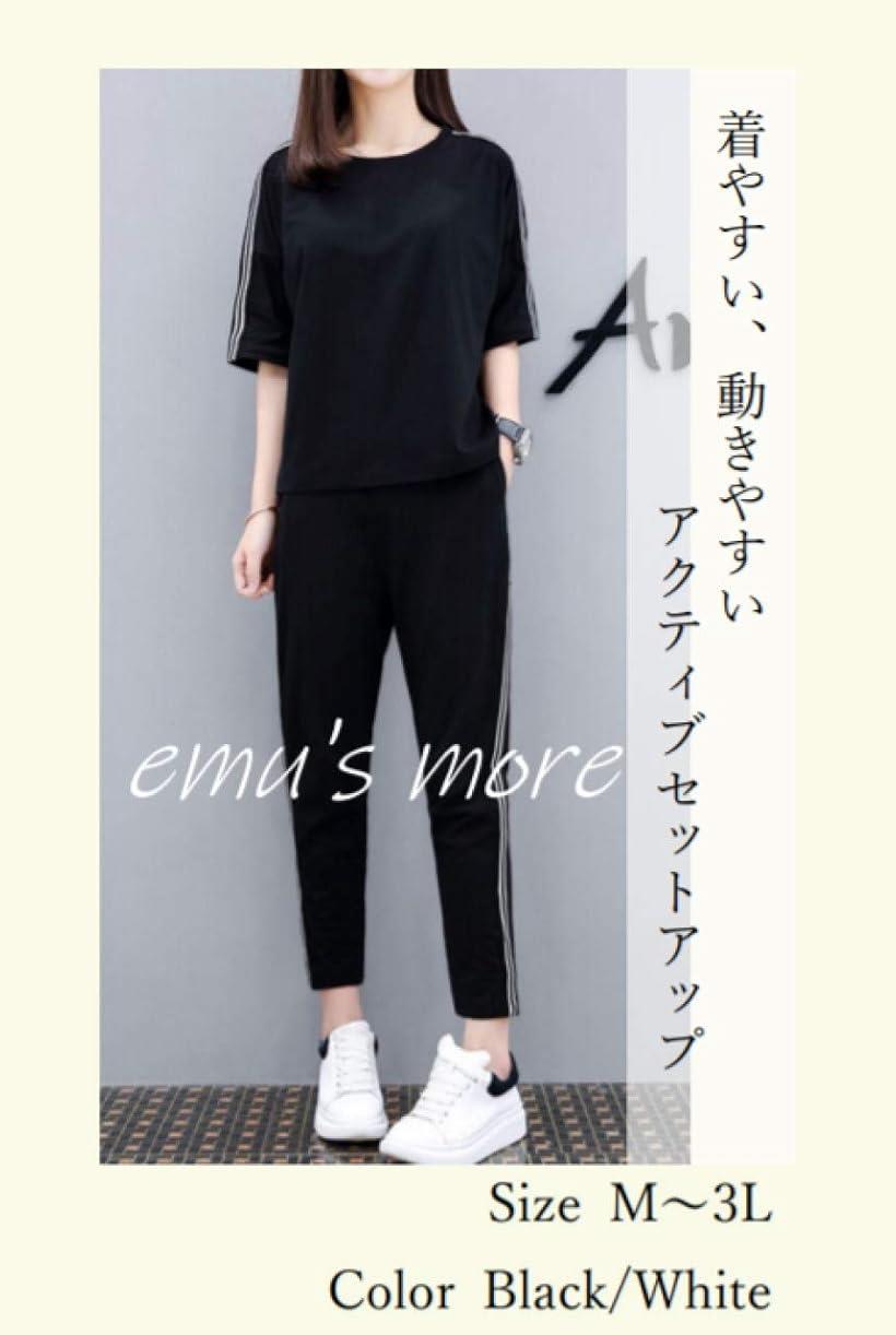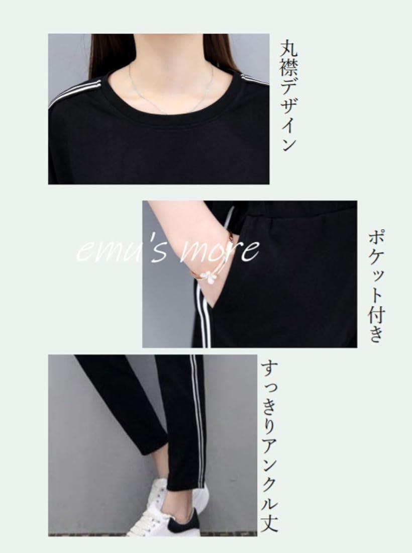【楽天ランキング1位入賞】上下セット スポーツウェア パンツ tシャツ セットアップ レディース 薄手 ポケット付き (ホワイト, M)