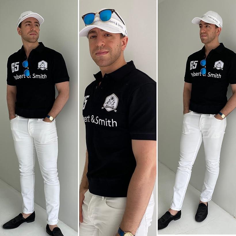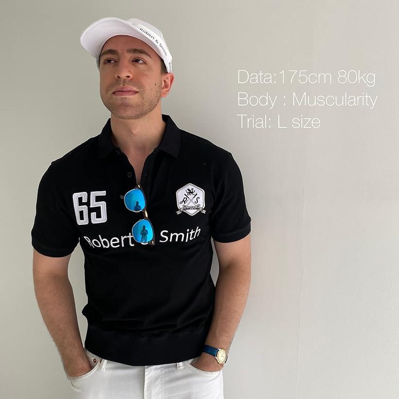 ロバート・アンド・スミス ポロシャツ 100% コットン ゴルフポロシャツ ゴルフウエア 半袖メンズ 黒(ブラック, M)