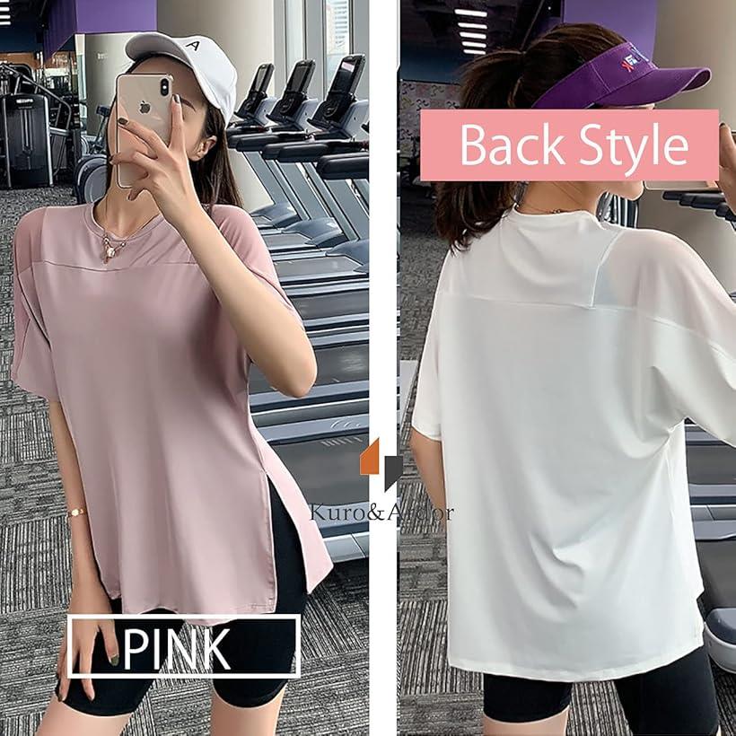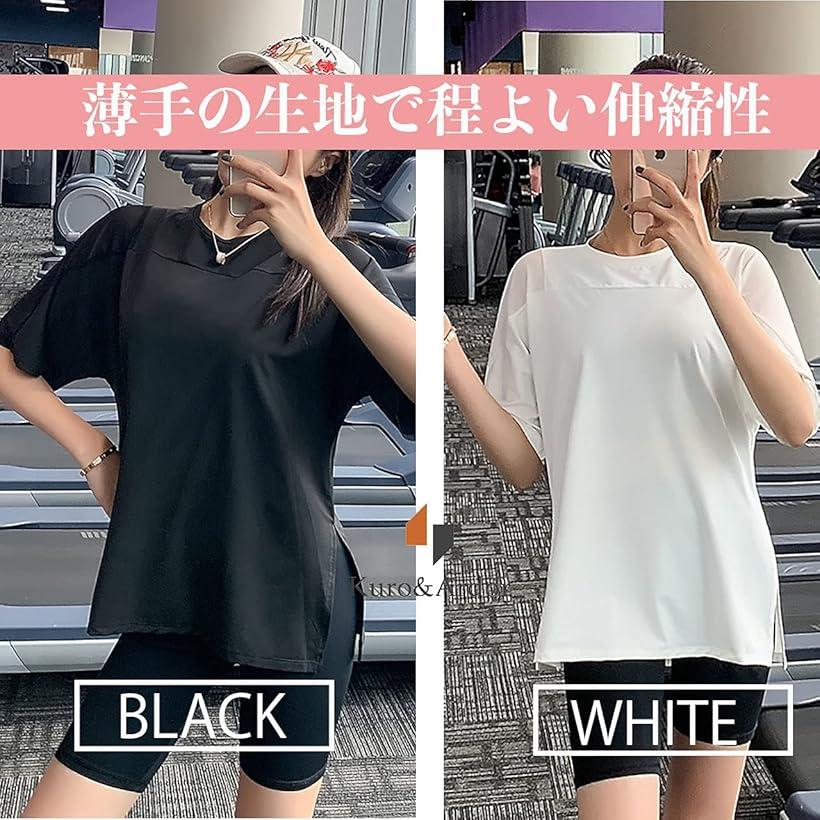 フィットネスウェア Tシャツ 半袖 レディース トップス ヨガ トレーニング ホワイト M (ホワイト, M)