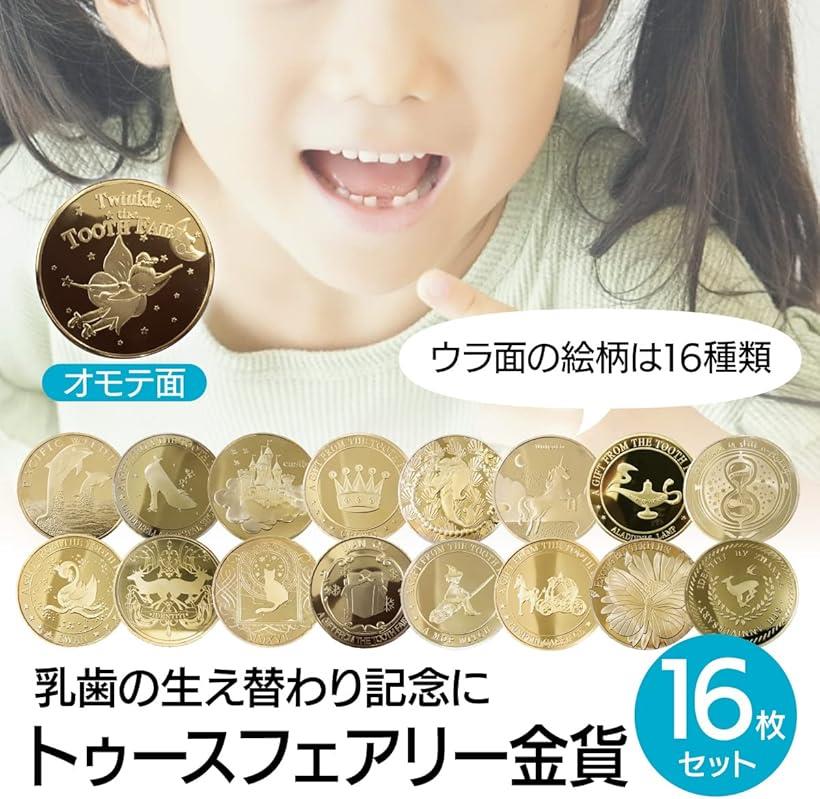 おもちゃ メダル 金貨 コイン トゥースフェアリー 乳歯 生え変わり 裏面デザイン16種セット