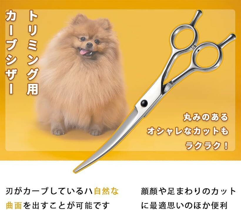 バリエーションコード : 2bjfgithjd商品コード2b2pysj6o8商品名トリミングシザー カーブシザー 19cm コーム ミニハサミ 猫 犬 トリミングブランドLESNIC「正刃・逆刃両用カーブシザー」ハサミのハンドルは正刃・逆刃両用リバーシブルメガネ。顔周リ/足回リ/ボデイラインなど 部位によって向きを変えられます。「顔や手足のお手入れミニハサミ」余分な被毛をカットすることで、もつれにくくします。顔周りや足裏など細かな部分のカットにミニサイズのハサミです。「顔や手足のお手入れミニハサミ」余分な被毛をカットすることで、もつれにくくします。顔周りや足裏など細かな部分のカットにミニサイズのハサミです。「ペット専用コーム」粗目で毛をほぐし、細目で毛を整え、ツヤのある美しい仕上がりになります。粗目と細目の一体になったタイプで用途に応じて使い分けでき、便利です。「切れ味抜群」特級ステンレス製で錆びにくくて、ハサミの良い切れ味を長くて保つので、耐久性があり、長期にご使用することができます。「ハサミケース付き」シンプルなPU革収納ケースにちゃんと収めてくれて保管や持ち運びにも便利な犬トリミングハサミ。商品内容:カーブシザー、ミニカットシザー、シザーケース、コーム、ネジ調整器具※ 他ネットショップでも併売しているため、ご注文後に在庫切れとなる場合があります。予めご了承ください。※ 品薄または希少等の理由により、参考価格よりも高い価格で販売されている場合があります。ご注文の際には必ず販売価格をご確認ください。※ 沖縄県、離島または一部地域の場合、別途送料の負担をお願いする場合があります。予めご了承ください。※ お使いのモニタにより写真の色が実際の商品の色と異なる場合や、イメージに差異が生じることがあります。予めご了承ください。※ 商品の詳細(カラー・数量・サイズ 等)については、ページ内の商品説明をご確認のうえ、ご注文ください。※ モバイル版・スマホ版ページでは、お使いの端末によっては一部の情報が表示されないことがあります。すべての記載情報をご確認するには、PC版ページをご覧ください。ペット用カーブシザー刃がカーブしているハサミです。自然な曲面を出すことができ、顔まわりや足まわりの繊細なカットをする時に使用します。指穴部分は鋏を動かしやすい形状にデザインされています。カットの作業時間を短縮できる持っておくと便利なハサミです。こまめにペットサロンにいくのは、お金も時間もかかります。トリミングの費用も節約できます。このトリミングハサミがあれば、サロンに行かなくても、ご自宅で愛犬愛猫のお手入れが簡単にできます。カーブシザーが選ばれる理由1. 「切れ味抜群」特級ステンレス製で錆びにくくて、ペットハサミの良い切れ味を長くて保つので、耐久性があり、長期にご使用することができます。2. 「毛質に合わせて調整」ハサミを使用していく上で、ゆるんだりした場合は、付属の調整器具でネジを回すことで簡単に調整可能です。また、固い毛を切るときはゆるめに、柔らかい毛を切るときはきつめにと、犬の毛質によって調整することで、よりスムーズにお手入れができるようになります。3. 「両向きに切れるメガネハンドル」ハサミのネジ部分から二等辺三角形になっています。左右対称なので表裏がなく正刃でも逆刃でも使えることが特徴です。人間工学的にスムーズに動かしやすい設計。4. 「音で怖がらないように」トリミングシザーのグリップ部分にゴムのヒットボイントが付いており、嫌な音がしないよう設計されたアイテム。完全に聞こえないわけではありませんが、犬猫が怖がらない程度まで軽減されます。「商品内容」xカーブバサミxミニバサミxシザーケースxコームx調整器具「丁寧な生産・検品」熟練の職人が1つ1つ丁寧に生産・検品を実施しています。「ご使用上の注意」*犬・猫のお手入れ以外には使用しないでください。*目・耳・口・肛門周辺のお手入れは各部に直接触れないように注意してください。*ペットの皮膚や被毛を傷つけたり、商品の破損につながりますので、無理な力で使用しないでください。*子供が使用する場合は、大人が立ち会ってください。*破損する恐れがありますので、落とさないように注意してください。*火気や水気のそばでの使用や保管は止めてください。*幼児・子供・ペットの触れない所に保管してください。
