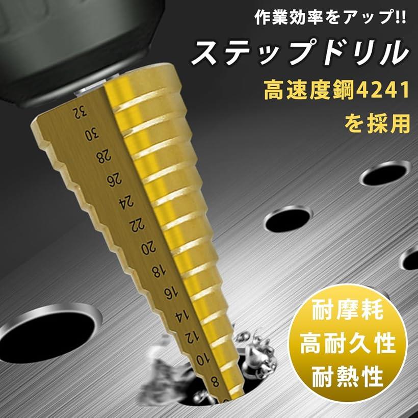 バリエーションコード : 2bjriy9ssq商品コード2bjriy50kl商品名互換品ステップドリル ドリルソー 穴あけ たけのこ ドリル ビット スパイラル ツイスト HSS 電動工具 ツール 金属 鉄工 木工 6本セット 単品ブランドkarimカラーGoldサイズ等6本セット(単品)ツイストドリル3本+ステップドリル3本の6本セットです。「高速度鋼4241」高品質の高速度鋼(ハイス鋼、HSS)を使用+チタンコーティング仕上の表面処理により、耐久性、耐摩耗性、耐熱性に優れた抜群の切れ味を実現しました。耐久性に優れているので長くお使いいただけます。「汎用性」ステンレス板、薄い鉄板、アルミ板、木材、ビニル、樹脂などの穴あけ作業に適しています(鉄板:4mm以下、ステンレス:1.2mm以下にて掘削可能)。その他、家庭用DIY、下穴の拡大、面取り、バリ取りなどの作業にも不可欠なツール。電気ドリル、充電ドリル、インパクトドライバー、ボール盤など様々なニーズに合わせて自由にご利用いただけます。※ 他ネットショップでも併売しているため、ご注文後に在庫切れとなる場合があります。予めご了承ください。※ 品薄または希少等の理由により、参考価格よりも高い価格で販売されている場合があります。ご注文の際には必ず販売価格をご確認ください。※ 沖縄県、離島または一部地域の場合、別途送料の負担をお願いする場合があります。予めご了承ください。※ お使いのモニタにより写真の色が実際の商品の色と異なる場合や、イメージに差異が生じることがあります。予めご了承ください。※ 商品の詳細(カラー・数量・サイズ 等)については、ページ内の商品説明をご確認のうえ、ご注文ください。※ モバイル版・スマホ版ページでは、お使いの端末によっては一部の情報が表示されないことがあります。すべての記載情報をご確認するには、PC版ページをご覧ください。*生産ロットにより、サイズや重量に多少の違いがある場合もございます。*購入前に必ずご利用の機器や本製品サイズ等をご確認の上、ご自身の機器・機材にご利用可能かどうかをご確認ください。*説明書の添付はございませんので、使用方法等を理解している方のみお買い求めください。*生産ロットにより、サイズや重量に多少の違いがある場合もございます。「仕様」ステップドリル:4-12 mm 5段(4/6/8/10/12mm)/4-20mm 9段(4/6/8/10/12/14/16/18/20mm)/4-32mm 15段(4/6/8/10/12/14/16/18/20/22/24/26/28/30/32mm)ツイストドリル:3mm/6mm/8mm