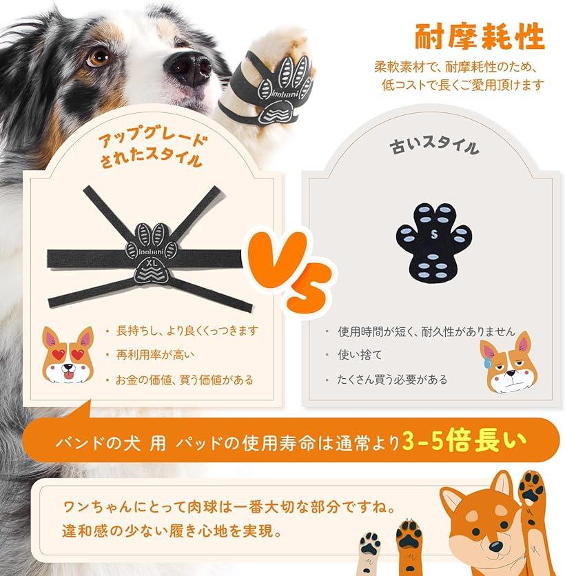 【楽天ランキング1位入賞】犬 滑り止め 老犬 シール 足の甲に回す帯のデザイン 耐久性 粘着 肉球 保護 XL 16枚入り (ブラック, XL, 16枚入り)