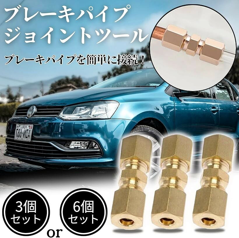 【楽天ランキング1位入賞】ブレーキパイプ ジョイント コネクタ 径 4.8mm 3/16 継手 フレア加工不要 フレアツール 車 アメ車 旧車 バイク トラック 修理 6個 (6個 ゴールド)