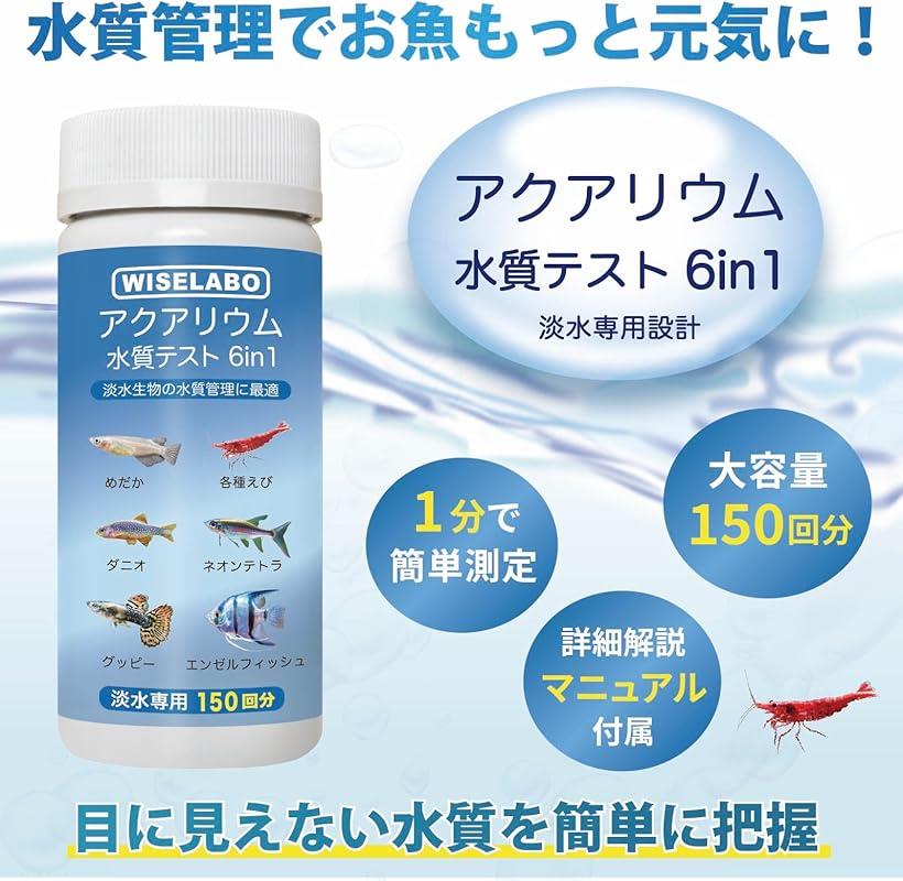 【楽天ランキング1位入賞】アクアリウム 水質テスト 6in1 150回分 水質検査 キット 水槽 試験紙 メダカ 金魚 熱帯魚 淡水専用設計 ワイズラボ(白)