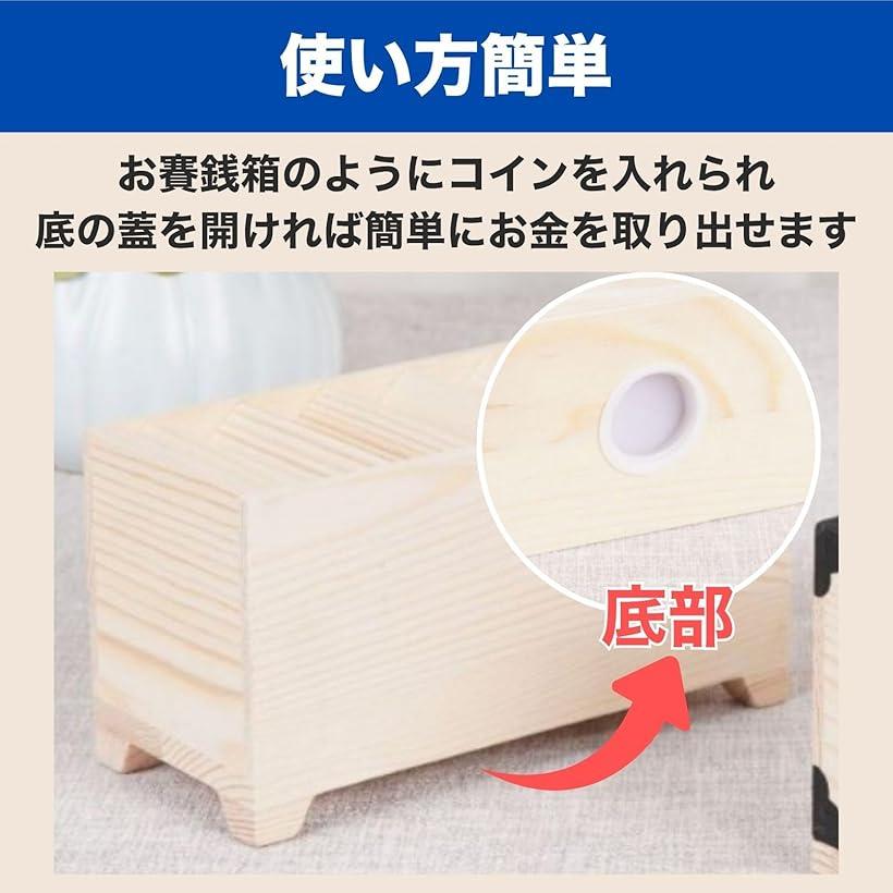 貯金箱 賽銭箱 木製 インテリア プレゼント 500円玉貯金箱 アンティーク (無地, 単品)