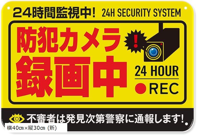 【楽天ランキング1位入賞】防犯カメラ 作動中 屋外 ブリキ 看板 プレート 防犯グッズ 監視カメラ ダミーカメラ 録画 警察 (横40cmx縦30cm (新))