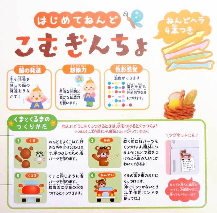 商品情報材質(こむぎ粘土)小麦・水・塩分・食用顔料材質(ヘラ)PP注意事項小部品があるため、誤飲・窒息の危険を回避するためにも、3歳未満のお子様には絶対に与えないでください。【小麦使用の安心素材】こむぎんちょ 11色 / ギンポー 知育玩具 こむぎ 粘土 おままごと 遊び 子供 幼児 小麦粘土 安全 銀鳥産業 銀鳥産業 安全 ねんど 小麦 教育 知育 3歳 4歳 5歳 6歳 おもちゃ 【こむぎねんどとは?】・「こむぎ+えんぶん+みず」が主成分のねんどです。そのため、お子様が間違って口に入れても安心な粘土です。【ねんどあそびで期待できること】・脳の発達:手や指先を使うことで脳の発達を促す。・想像力:自由な発想と豊かな想像力を養おう。・色彩感覚:「こんぎんちょ」には11色のカラー粘土が入っています。そのため、混色で遊ぶことで色彩感覚が身に付きます。【商品内容】小麦粘土11色(紺・青・エメラルド・緑・赤・桃・橙・黄・茶・紫・白2個)各35g【材質】小麦粘土/小麦粉・水・塩分・食用顔料・保存料、容器/PP【サイズ】W255×H225×D30mm【対象年齢】3歳以上 2