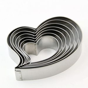 収納に便利なケース入りのクッキー抜き型、クッキー型です。 バレンタインにちょっと人と違ったハート型なんていかがですか? このセットは小さいハートから大きいハートまで7サイズがセットになっています。 先が鋭いので、取り扱いに注意してください。使用後は洗い、水気を拭いて保管してください。 材質 ステンレス サイズ・板厚 各サイズ約36×30×H20mm43×36×H20mm49×44×H20mm57×46×H20mm60×53×H20mm72×60×H20mm80×65×H20mm 生産国 *** 注意事項 抜き型には多少の歪み、個体差があります。サイズには多少の誤差があります。長時間、食品・食用油・洗浄液・食塩水・酸・アルカリに触れたた場合、錆が発生する可能性があります。実際の商品が写真と若干異なる場合があります。また記載サイズ等を予告なしに変更する場合があります。
