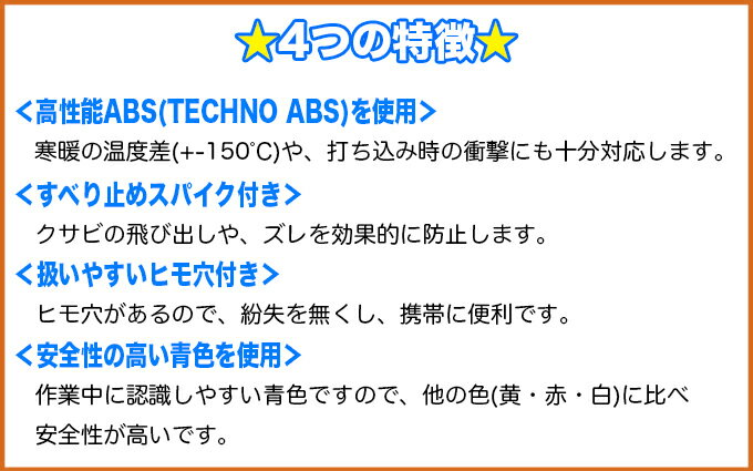商品情報 メーカー名 VALLORBE(バローべ) 商品名 バローべ伐採クサビ16cm 10本セット サイズ 長さ:160mm幅:60厚み:24mm材質:ABS樹脂 商品説明 プロが誇れる本格伐倒仕様。他のABSウェッジでは「よく割れてしまう」という方にお勧め。 片面には大型突起がついており、木から飛び出しにくくなっています。 青色のため視認性が良好で打ち込み作業中の安全性が大きく、 ヒモを通す穴があり携帯に便利です。こちらは10本セットになります。 ▼ ▼ バローベクサビラインナップ ▼ ▼ 16cm クサビ1本セット 4180円 16cm クサビ3本セット2,200円 16cm クサビ5本セット 2860円 16cm クサビ10本セット 2160円 23cm クサビ1本セット 2200円 23cm クサビ3本セット 2200円 23cm クサビ5本セット 3080円 23cm クサビ10本セット 3080円 27cm クサビ1本セット 3740円 27cm クサビ3本セット 4180円 27cm クサビ5本セット 2200円 27cm クサビ10本セット 3300円