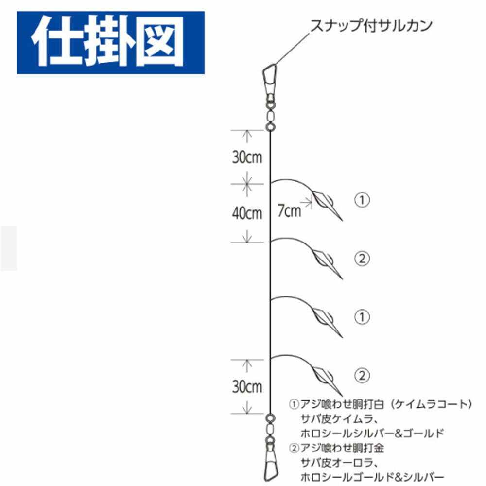 【6Cpost】ハヤブサ SS428 船極ライトタックル落し込みKM&ホロ4本 7-8(haya-829768) ライトタックル 落し込み ケイムラ&ホロフラッシュ4本 船はもちろん堤防でも扱える全長1.8mのショートロッド対応設計。 製品の特徴 鈎と加工 アジ鈎の掛かりの良さはそのままに、線径を太くすることにより強度アップした「アジ喰わせ胴打」を採用。胴打加工によるフラッシングでベイトの食性を刺激します。 シリーズ名:船極喰わせサビキ 品番:SS428 製品形態: 全長1.8m 袋入り数:4本鈎1セット 鈎種・色:アジ喰わせ胴打白 金 スペック 鈎(号):7 ハリス(号):8 幹糸(号):8 [共通画像使用] 検索:落とし込み ハヤブサ 仕掛け 泳がせ のませ 船釣り まとめ買い カンパチ 青物 ヒラメ仕掛け鈎針ナイロンフロロエステルPEリーダー海防波堤堤防波止サビキ船釣りオフショアノマセ泳がせ落し込み