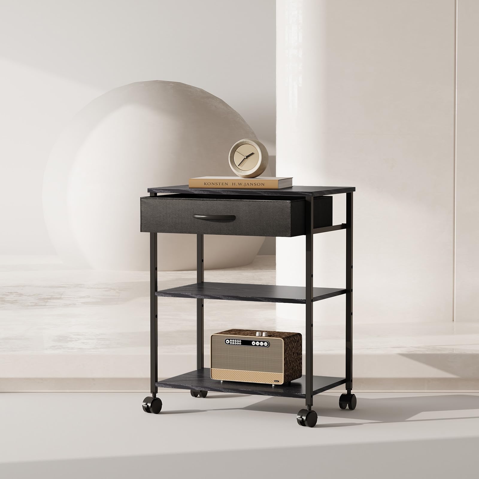 【送料無料】Maihail サイドテーブル ワゴン キャスター付き パソコンラック サイドワゴン プリンター台 デスクワゴン 板は調節可能 袖机 PC本体収納 幅48x奥行30x高さ60cm 黒い