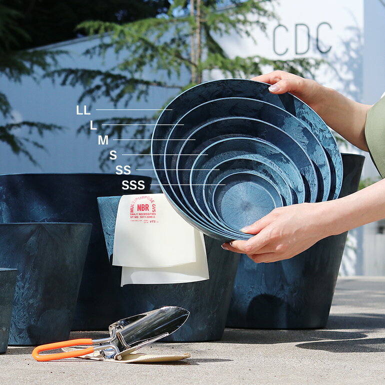 ART STONE CONTAINER ROUND(Sサイズ)はこちら ART STONE CONTAINER ROUND(Mサイズ)はこちら滑らかな石のような質感がどんな植物にもしっくりと馴染んでくれるART STONEプランター用の受け皿。 ART STONEプランターは、植物への水やりをコントロールしてくれる機能を装備。 自然環境(直植え)に近い状態を表現することができるのが特長です。 素材には、有害物質を使用していないポリプロピレンに石粉を混ぜた環境にも優しい新素材を採用。 軽量で割れにくく、室内での植物管理にもおすすめ。 もちろん屋外での使用にも対応しています。 直植えだけでなく、鉢植えをそのまま入れてプランターカバーとして使っても素敵。 植物の楽しみ方の幅を広げてくれるアイテムで、こちらのソーサーと組み合わせて使うと さらにインテリアとしても完成度も高まりますよ。 ※こちらは、ソーサー(受け皿)単体での販売です。 ソーサーは6サイズをご用意しております。 「ART STONE」シリーズで揃えても素敵ですよ。 プランターはこちら 素材には環境にやさしいリサイクル素材を使用しています。 ナチュラルなカラーバリエーションも魅力です。 ポリプロピレンとストーンパウダーを混ぜ合わせた環境に優しい新素材を使用しております。 原料に有害物質を使用していなところも◎。 また樹脂は寒さに強く、冬場の凍結などによる割れもないため安心してお使いいただけます。 ストーンのような質感でありながら軽量です。 Attention!お買い求めの前に ブランド名 amabro[アマブロ] 商品名 ART STONE SAUCER 重量 【SSS】30g 【SS】100g 【S】150g 【M】200g 【L】300g 【LL】450g サイズ 【SSS】φ108×H22mm (3~4号程度の植木鉢にお使いいただけます) 【SS】φ137×H22mm (5~6号程度の植木鉢にお使いいただけます) 【S】φ176×H25mm (7~8号程度の植木鉢にお使いいただけます) 【M】φ215×H30mm (8~9号程度の植木鉢にお使いいただけます) 【L】φ258×H35mm (10~11号程度の植木鉢にお使いいただけます) 【LL】φ296×H40mm (12~13号程度の植木鉢にお使いいただけます) 素材 ストーンパウダー、ポリプロピレン カラー グレーブラウンネイビーブラック 関連商品 ART STONE 一覧 ギフトラッピング 対応しておりません 注意事項 素材の特性上、細かな傷や色ムラなどが見られます。 また、入荷時期により同じ色の中でも個体差が見られる場合がございます。 色味や模様はお選びいただけませんので予めご了承ください。 製品仕様としてご了承いただきました上で、ご購入くださいますようお願いいたします。 備考 ※こちらは、ソーサー単体での販売です。 別売りのプランター『ART STONE』は、こちらよりお買い求めください。 FEATURE / 特集