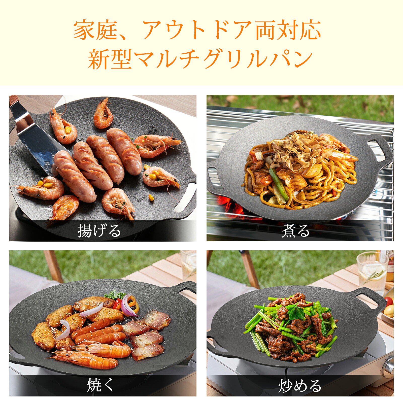 マルチグリドル 28cm 鉄板 鉄鋳物製 無塗装 IH ガス 焚き火 直火対応 グリルパン 両耳マルチグリドルパン 焼肉 キャンプ BBQ アウトドア 1~3人適用