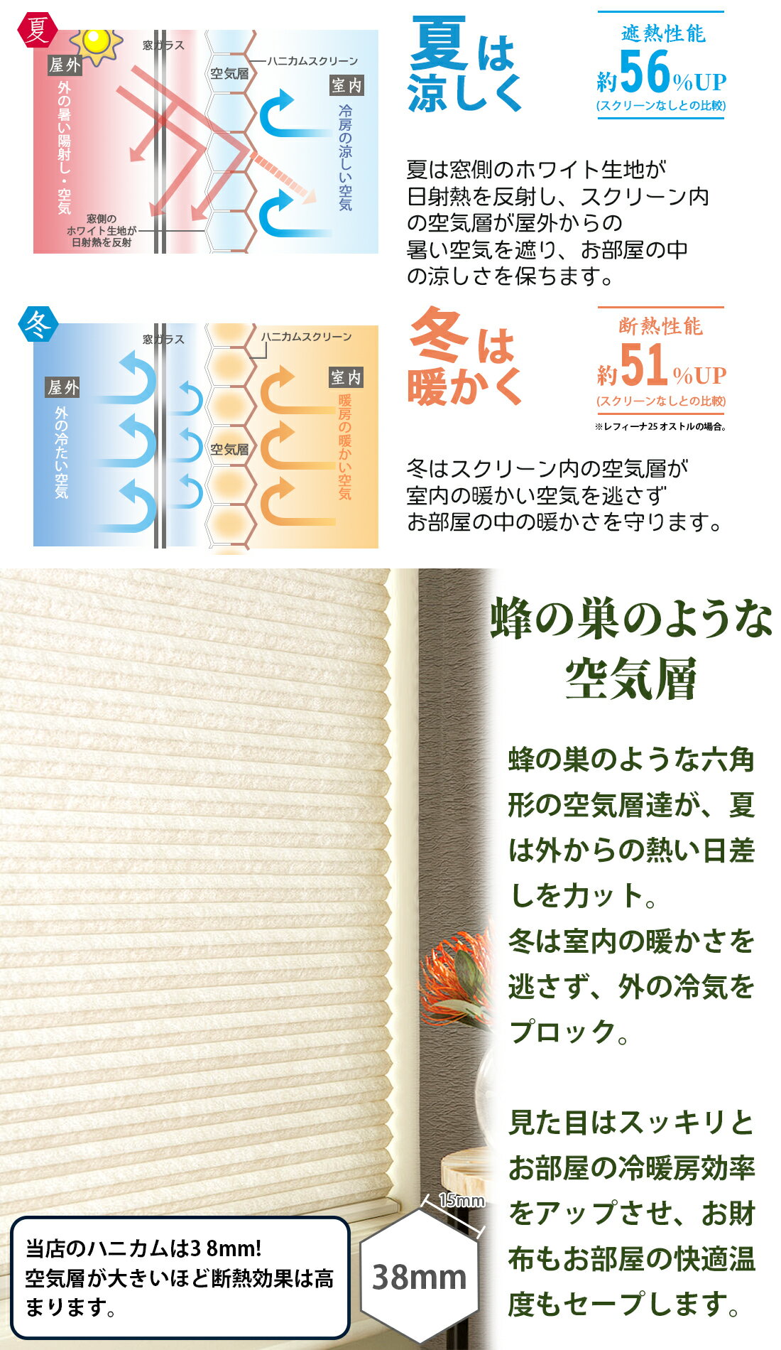 【P5倍バック&1500円クーポン】ハニカムシェード つっぱり ハニカムスクリーン コードレス カーテンレール取付けOK オーダー シェード ハニカム省エネ 二層構造 省エネ ブラインド 賃貸 西日対策省エネ 寒さ対策 間仕切り