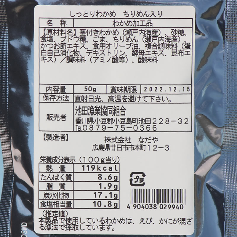 【11/26★300枚限定・5%OFFクーポン★3%OFFクーポン★P2倍★】 池田屋 しっとり仕立てのコリコリわかめ ちりめん 40g×2個【 国産 わかめ 若布 ワカメ ちりめん ちりめんじゃこ 小豆島 池田漁協 池田漁業協同組合 海産物 水産加工品 】