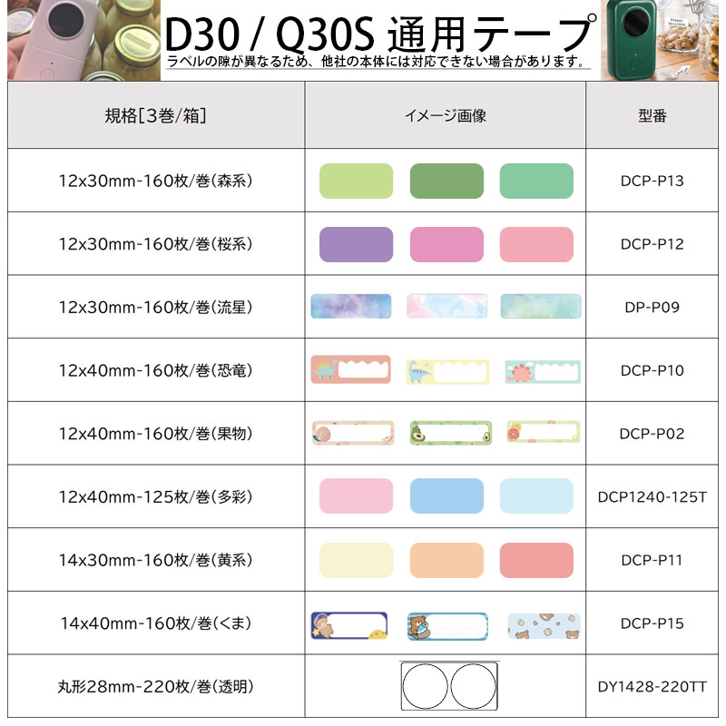 【選べる】3巻 Phomemo D30 Q30S ラベルライター 感熱ロール紙 12mm ~ 15mm 固定サイズ 白地黒文字 透明地黒字 模様テープ 純正用紙 ラベルプリンター 食品表示 Bluetooth スマホ テプラ 本体 ステッカー 収納 値札 お名前シール 手帳 カット済 角丸 ラベルフォメモ公式