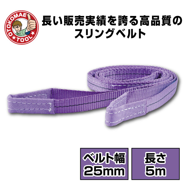 男前ツールは「○○セットのご注文でさらにお得!」などは一切せず、自信をもってお勧めする商品を単品でベストの価格でご提供いたします! 是非一度お試しください!スリングベルト! ヨーロッパの工業規格である「CEマーク」を取得した玉掛け用の繊維ベルト(ベルトスリング)。 男前ツールがオススメするのは一般的な両アイ形になります。 運送や建築現場などで利用されることの多いスリングベルトは、なんといっても安全性が第一。男前のスリングベルトはCE規格のみならず日本国内の検査機関に破断テストを実施しており、その耐久度は折り紙つきです。 ベルト自体柔らかめで扱いやすく、そして何よりそのリーズナブルなお値段が人気の秘密です。 ●スリングベルト 5m ●ベルト幅:25mm ●使用荷重:800kg (ストレート吊りの場合) ※CEマーク取得商品(安全係数6) ※CEマークで規定されている数値とJIS規格での数値は異なります。 ※上記各最大使用荷重を超える吊り荷は絶対に吊らないでください。 ※使用時は吊り上げ物の角にパッドなどを必ず当ててご使用ください。 【発送に関して】 ●11時までのご注文は即日出荷(土日祝、弊社指定休業日を除く。) ※在庫切れの場合はその限りではございません。 ●送料:1回のご注文につき600円(税別)の送料をご請求いたします。 ※沖縄・離島は別途見積もりとなります。 ※メーカー直送の商品は各商品ページにてご確認ください。 ※商品改良において、無断に外観、仕様等の変更する場合がございますので、予めご了承ください。男前ツールから最強のスリングベルト を超破格でご提供! 男前ツールのおすすめ!この安価が嬉しいナイロンスリングベルトです! 安心・安全をモットーに販売しておりますのでご安心してがっつりとご使用ください! 出荷前に規格ごとに破断試験を行い、商品の安全性をきっちりと確認しております。 ※商品の安全係数は6倍となります。 高強度ポリエステル糸を使用しているので玉掛け作業や吊り上げ作業に適しています。 ISO4878取得工場で生産された商品で、なおかつ国内試験も行なっている商品です。 生産物賠償責任保険付(PL保険)なので、補償の方も万全です!