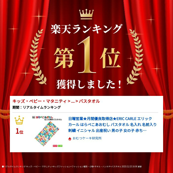11月28日(金)★到着可能★ ERIC CARLE エリックカール はらぺこあおむし バスタオル 名入れ 名前入り 刺繍 イニシャル 出産祝い 男の子 女の子 赤ちゃん 子供 カラフル プレゼント ギフトセット クリスマス 人気 豪華 流行 専門 出産記念品
