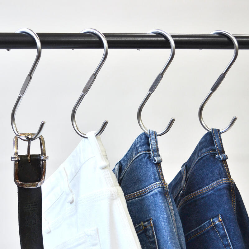 6mmと太めで無骨なデザインがオシャレなステンレス製S字フック:SUS304 アイアンS管フック シルバー インダストリアル 吊り下げ 衣類 収納 アパレル店舗 片づけ サビに強い カバン掛け 落ちない ハンガーラック 浴室 水廻り キッチン ディスプレイ インテリア クローゼット