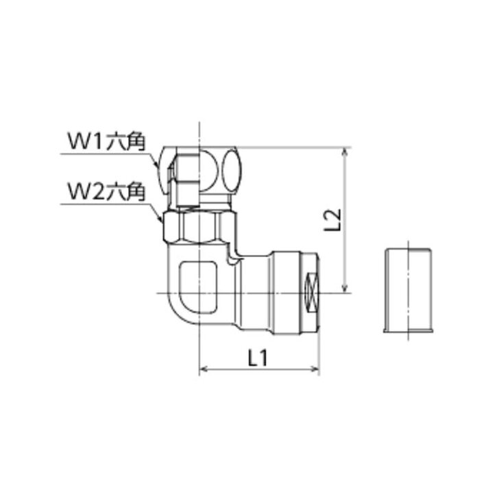 商品情報 ・銅管と架橋ポリエチレン管・ポリブテン管を接続。・架橋ポリエチレン管・ポリブテン管はワンタッチ接続。・既設の銅管配管から樹脂管にリフォームするのに便利。・銅管はロウ付け不要のメカニカル接続(ナット締め)で安定した施工を実現。 商品詳細 ●材質・黄銅●仕様・最高許容圧力:1.75MPa・使用温度範囲:−20℃〜95℃・使用流体:冷温水(給水・給湯)、不凍液(暖房・融雪)●サイズ・適用管:銅管3/8(銅管Φ12.7mm)×架橋ポリエチレン管、ポリブテン管10A・L1:41mm・L2:50mm・W1:23mm・W2:20mm●注意事項・上記適合銅管サイズ表参照・コイル軟質銅管(質別O・OL、なまし銅管)には、必ず付属のインサートスリーブをご使用下さい。・埋設には使用できません。・商品・施工例の写真は代表です。 関連資材・おすすめ商品 銅管変換 銅管変換エルボ10