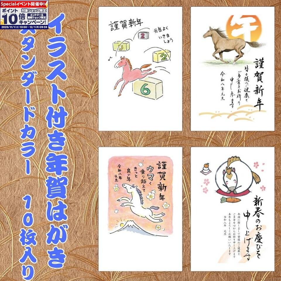 年賀状じまい 年賀はがき 自分で文字編集 年賀状 印刷 2026 フチなし 全面印刷 1枚から おしゃれ かわいい 和風 午年 うま年 馬 干支 お年玉付き 送料無料 クリエイター イラスト 差出人印刷 簡単編集 ポストカード