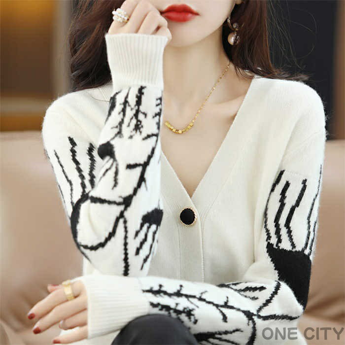 カーディガン コート レディース ニット トップス パーカー カットソー セーター カーデ 長袖 前開き 羽織り 春 秋 冬 Vネック 切り替え おしゃれ 花柄 トップス ジャケット 通勤 OL オフィス ゆったり ガーリー レトロ カジュアル 大人 20代 30代 40代 黒白 送料無料