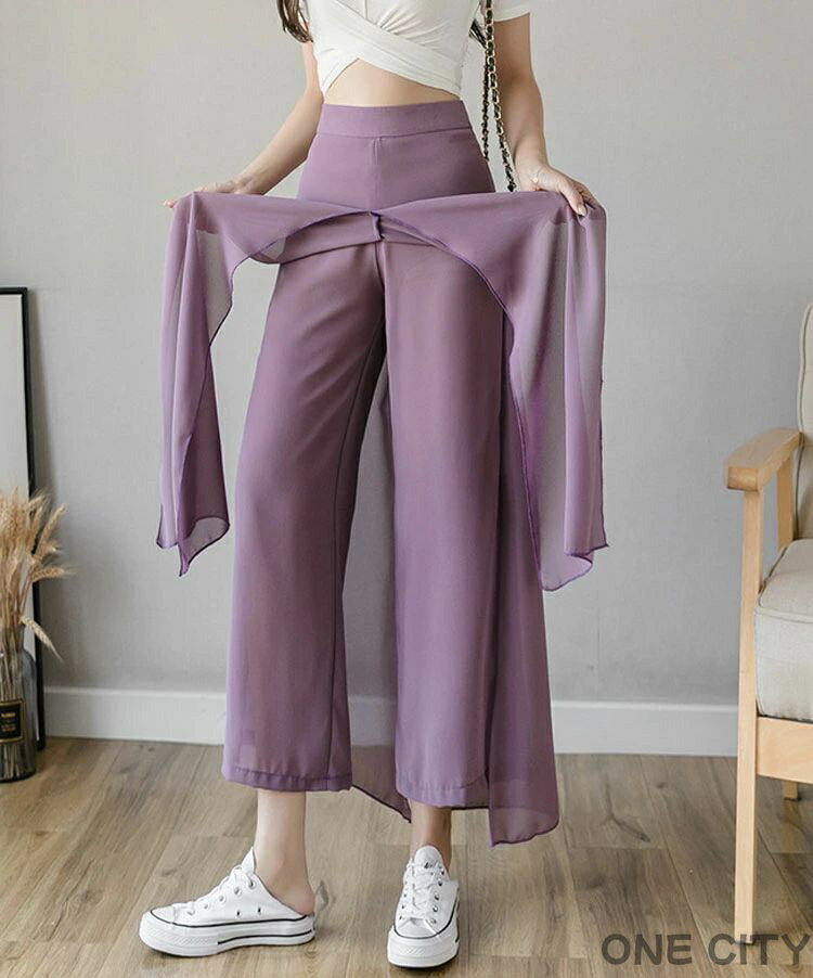 キュロット レディース シフォン スカート 夏 薄手 ワイドパンツ ガウチョパンツ ロングパンツ 無地 透け感 ハイウエスト ロングスカート ゆったり 涼やか 体型カバー 着痩せ 大きいサイズ 9分丈 7分丈