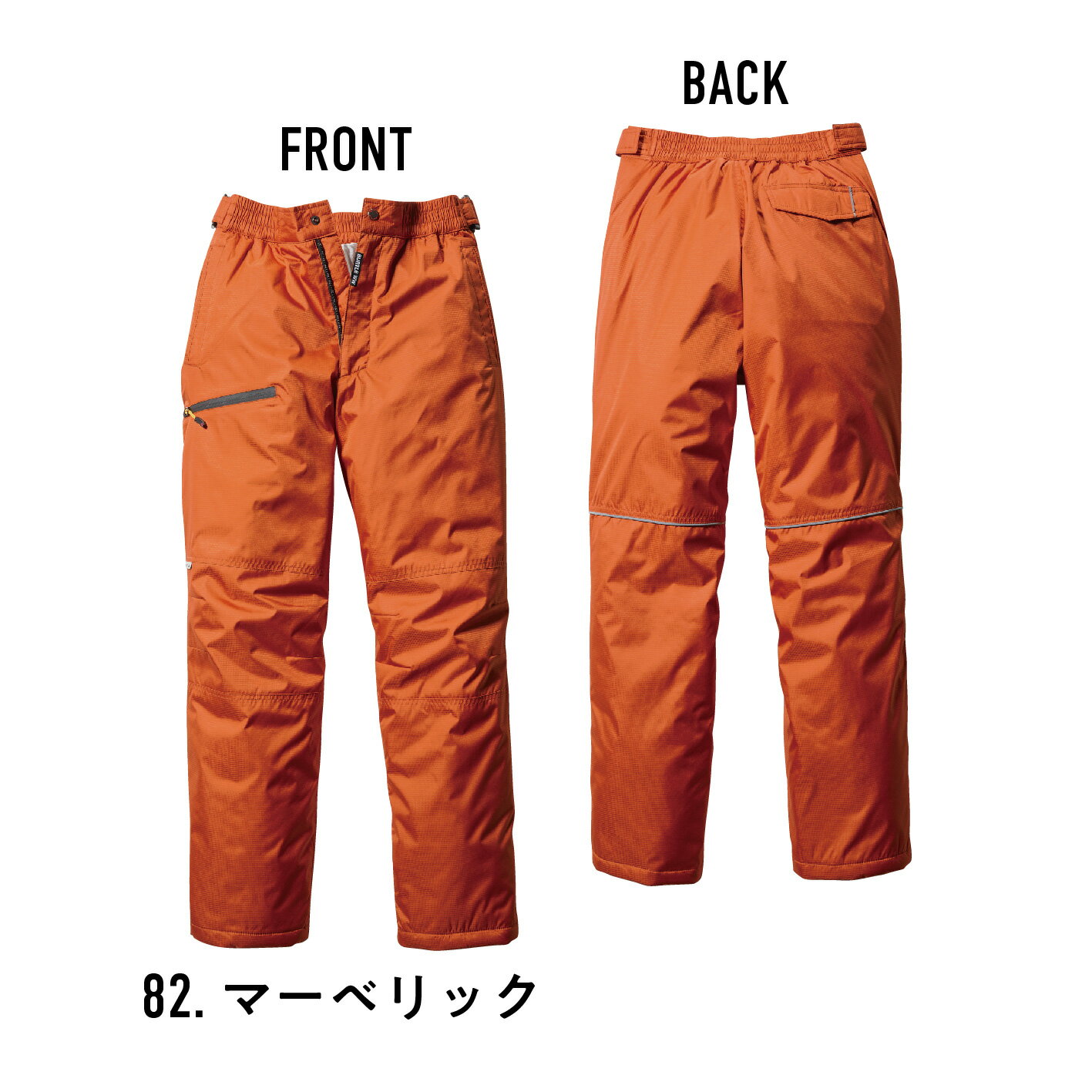 【メーカー】バートル 【品番】7212 【商品名】防寒パンツ 【素材】 表地:マイクロドットシェル、撥水加工 :ラミネートコーティング (軽量・防風・保温・耐水圧2000m/m) 裏地:全天候型保温素材【サーモトロン ラジポカ】 :帯電防止【メガーナ】 【混率】 表地:ポリエステル100% 裏地:ポリエステル100% 中綿:ポリエステル100% 【詳細】 ・軽量・防風・保温性に優れた マイクロドットシェル素材を使用 ・全天候型保温素材【サーモトロン ラジポカ】 を内側に配備 ・静電気防止素材【メガーナ】を 【サーモトロン ラジポカ】に内蔵 ・首まわりに温もり感たっぷりな マイクロブロックフリースを採用 ・男女ユニセックスの着用に対応 ※モニターによって発色が異なる場合があります